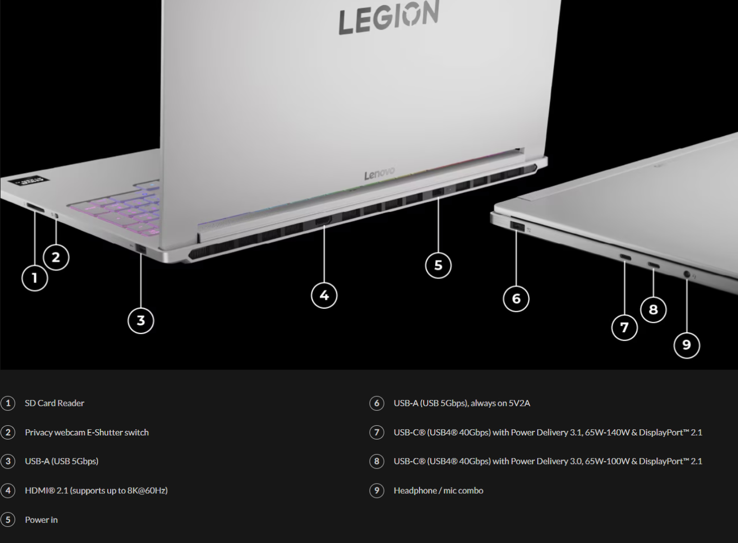 Niestety, Lenovo ogranicza Legion 7a do Nvidia GeForce RTX 5060 z 8 GB pamięci VRAM. W momencie premiery Lenovo oferuje Ryzen AI 7 450 i Ryzen AI 9 HX 470 z 32 GB pamięci RAM LPDDR5X-8533. Legion 7a posiada ten sam 16-calowy wyświetlacz OLED o rozdzielczości 2,5K, 500 nitów i 240 Hz, co jego odpowiednik Legion 7i, a także baterię o pojemności 84 Wh.
