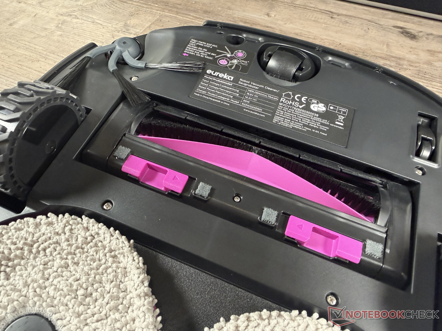 Jeśli chodzi o mopowanie, Eureka polega na dwóch obrotowych mopach w swoim flagowym modelu. Ta technologia mopowania jest obecnie przyćmiona przez rolkę mopującą, która jest obecnie używana nawet w wielu znacznie tańszych i zupełnie nowych robotach odkurzających średniej klasy, takich jak Ecovacs Deebot T90 Pro Omni lub Mova S70 Roller. Codzienny brud był zbierany w miarę możliwości. Jednak, podobnie jak wiele innych modeli z tą technologią mopowania, robot osiąga swoje granice w przypadku zaschniętych plam - nawet po wielokrotnym czyszczeniu. Wiele modeli mopów rolkowych jest tutaj lepszych. Wydajność jest wystarczająca w przypadku codziennych zabrudzeń.
