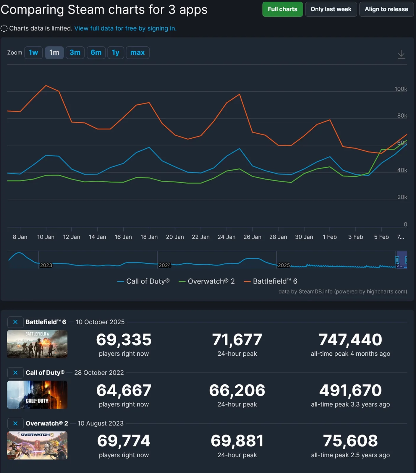 Dodanie ciągłej narracji jest odpowiedzią na jedną z krytycznych uwag dotyczących tytułu. Oczekiwanie na aktualizacje sprawiło, że szczytowa 24-godzinna liczba graczy w Overwatch przekroczyła 69 000, co jest najwyższym wynikiem od czasu debiutu gry na Steamie debiutu na Steam. Chociaż Battlefield 6 odzyskał od tego czasu przewagę i osiągnął poziom 71 000, jest to jednak znaczący postęp. Tymczasem Call of Duty, które obejmuje Black Ops 7pozostaje w tyle ze szczytowym wynikiem 66 206 graczy.