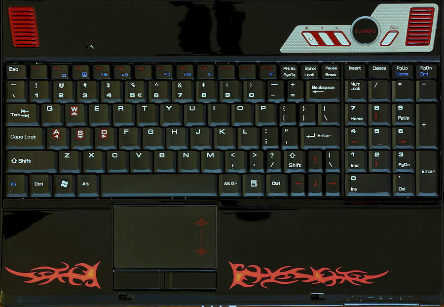 Jest ona dobrej jakości. Nieco denerwują zmniejszone klawisze (całe szczęście, że te mniej znaczące, chociaż wąski klawisz kropki i mały enter oraz wąskie strzałki trochę irytują). Dzięki tym zabiegom możliwe było wydzielenie klawiatury numerycznej. Uwagę zwracają także wyróżnione na czerwono klawisze A, W, S, D (laptop przeznaczony dla graczy).