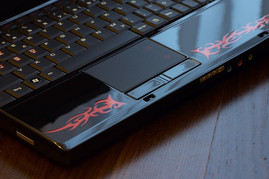 Laptop jest oklejony przez producenta szeregiem różnych naklejek, zwracających uwagę na wyposażenie i zastosowane technologie. Można je jednak stosunkowo łatwo oderwać bez skutków ubocznych. Usunąłem wszystkie; nie pozostał po nich żaden ślad.