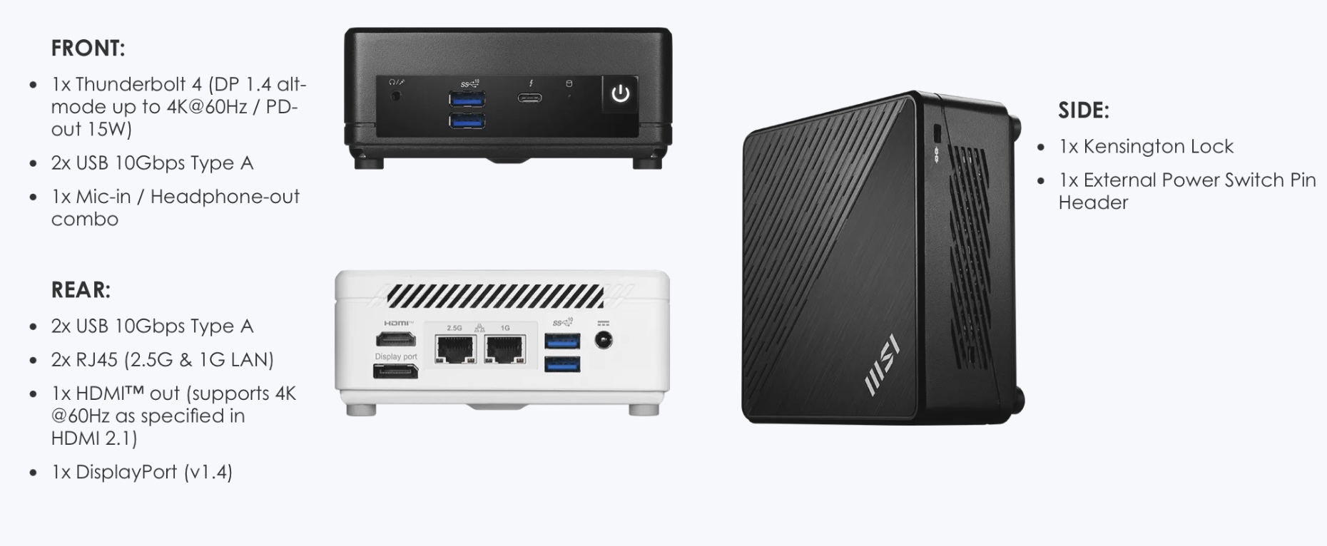 - 4x USB Type-A (10 Gb/s)