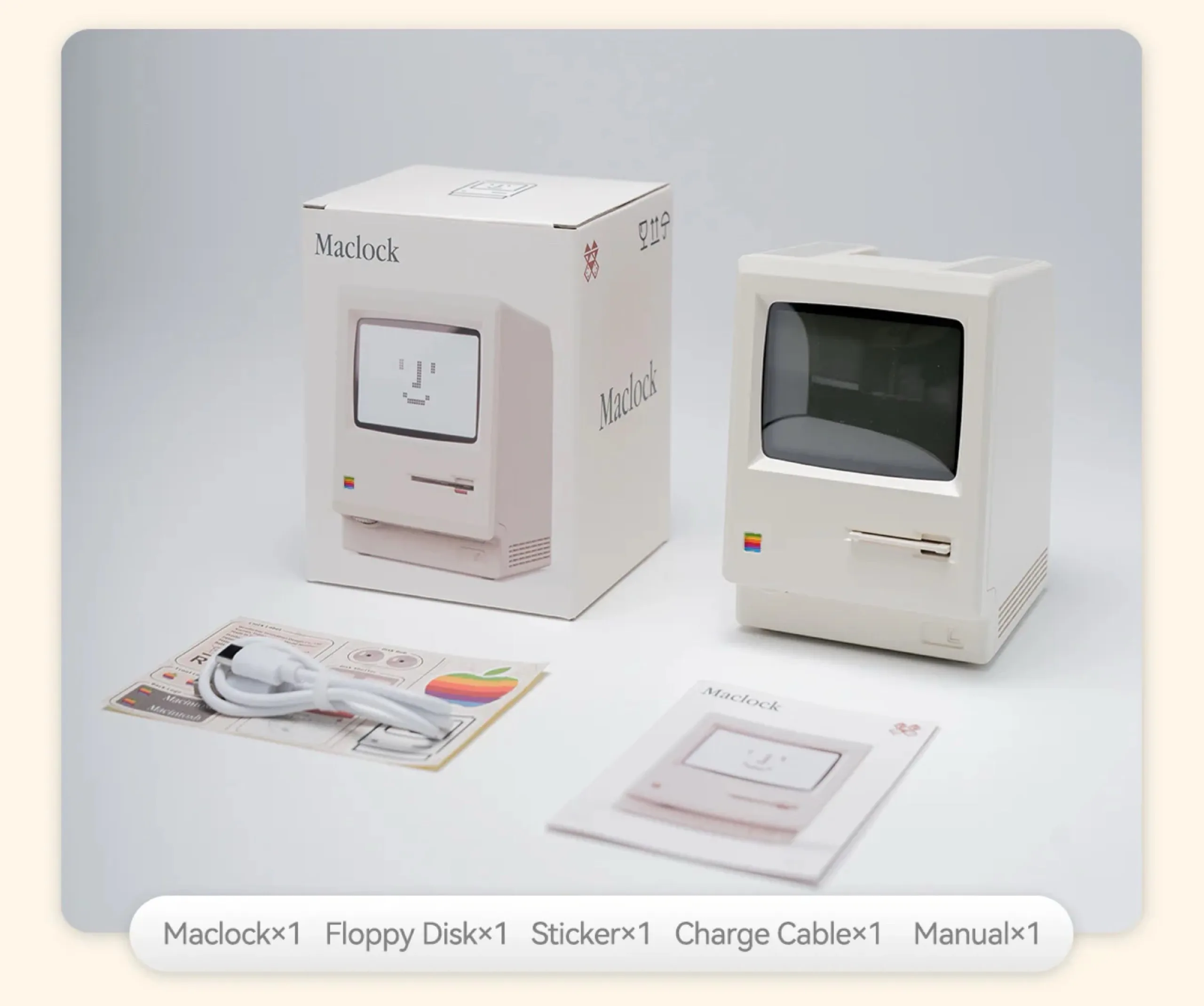 Wyświetlacz domyślnie pokazuje godzinę i datę, ale Maclock może być również używany jako budzik. Obudowa zegara cyfrowego ma wymiary 8 x 9,1 x 11,2 centymetra. Naklejki z tyłu obudowy muszą zostać naklejone przez kupującego. Kokogol Maclock jest produkowany tylko w ograniczonych ilościach; po wyprzedaniu nie będzie już dostępny.