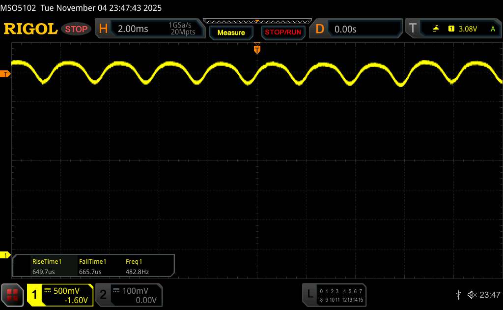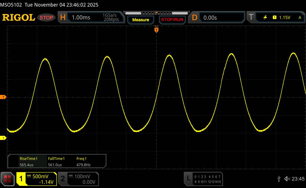 (+) | wzloty są liniowe (2.6% delta do poprzedniej częstotliwości)