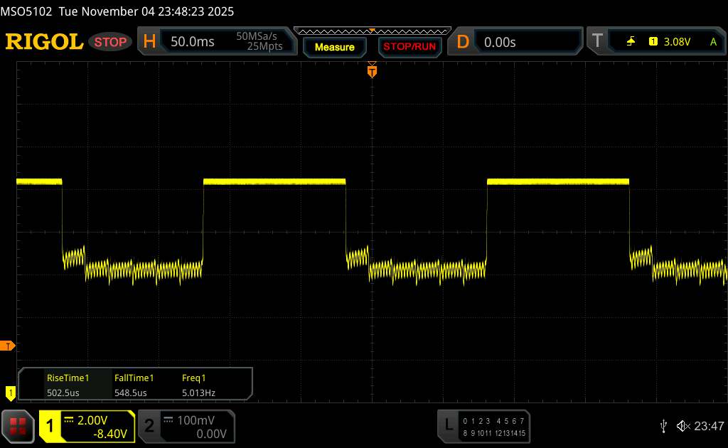 Sony wykorzystuje modulację PWM do sterowania luminancją. Za pomocą oprogramowania Rigol zmierzyliśmy częstotliwość 480 Hz. Nie podano żadnych informacji na temat przyciemniania DC lub PWM.