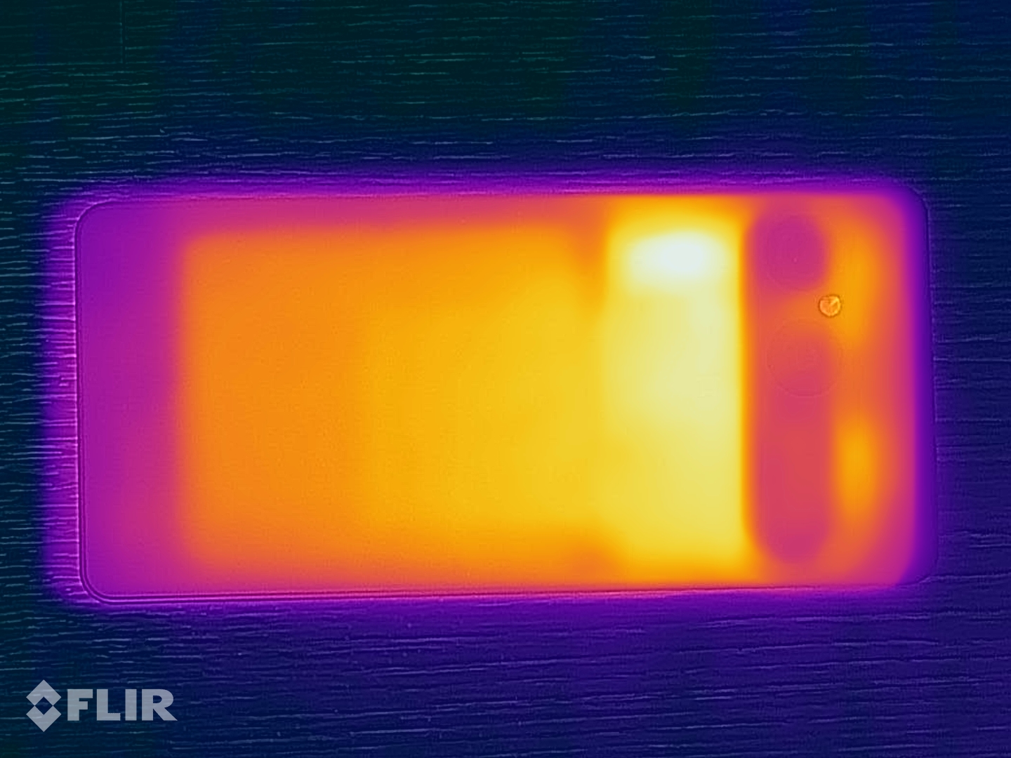 (±) Maksymalna temperatura w górnej części wynosi 43.8 °C / 111 F, w porównaniu do średniej 35.2 °C / 95 F , począwszy od 21.9 do 247 °C dla klasy Smartphone.