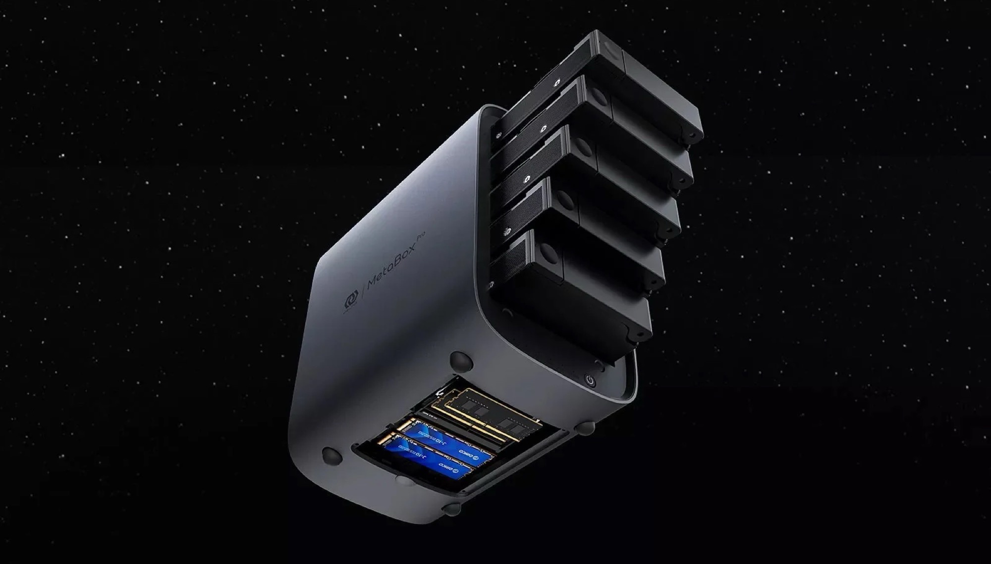 MetaBox NAS mieści dwa dyski SSD i pięć dysków twardych w eleganckiej metalowej obudowie