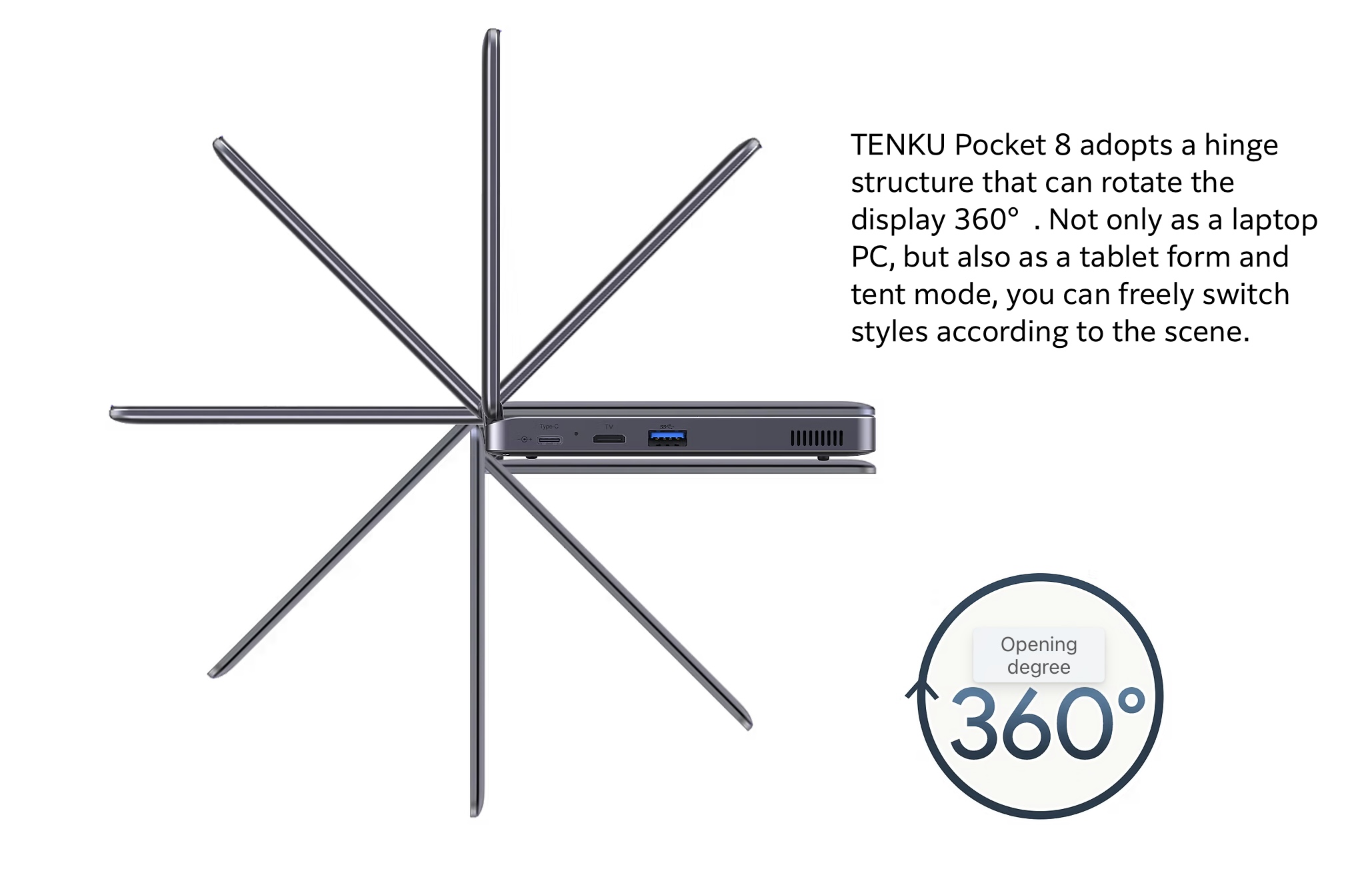 Przy wadze nieco ponad 650 gramów lub 1,43 funta, laptop Pocket 8 jest niezwykle kompaktowy, mierząc zaledwie 20 x 13 x 1,8 cm lub w przybliżeniu 7,8 x 5,1 x 0,71 cala. Inne godne uwagi funkcje obejmują baterię o pojemności 3800 mAh, zawias 360° i 10-punktowy wyświetlacz dotykowy.