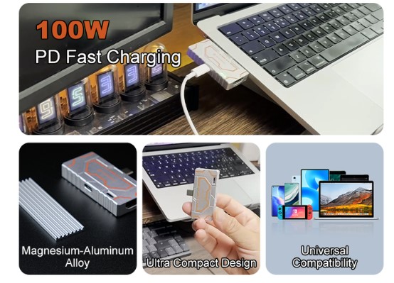 Urządzenie można podłączyć do smartfona za pomocą złącza USB-C, dzięki czemu smartfon można trzymać w dłoni nawet po podłączeniu stacji dokującej. Dostępny jest również port HDMI 2.0, który może być używany do wyprowadzania treści obrazu w 4K i przy 60 Hz. Jak zawsze, funkcja ta musi być obsługiwana przez dane urządzenie. To samo dotyczy ładowania USB PD, które jest obsługiwane przez rozwiązanie dokujące o mocy do 100 watów. Urządzenie, które waży 54,5 grama i ma 10 milimetrów grubości, jest umieszczone w obudowie ze stopu magnezu i aluminium, która według producenta zapewnia "rozpraszanie ciepła podczas długotrwałych operacji z dużą prędkością".