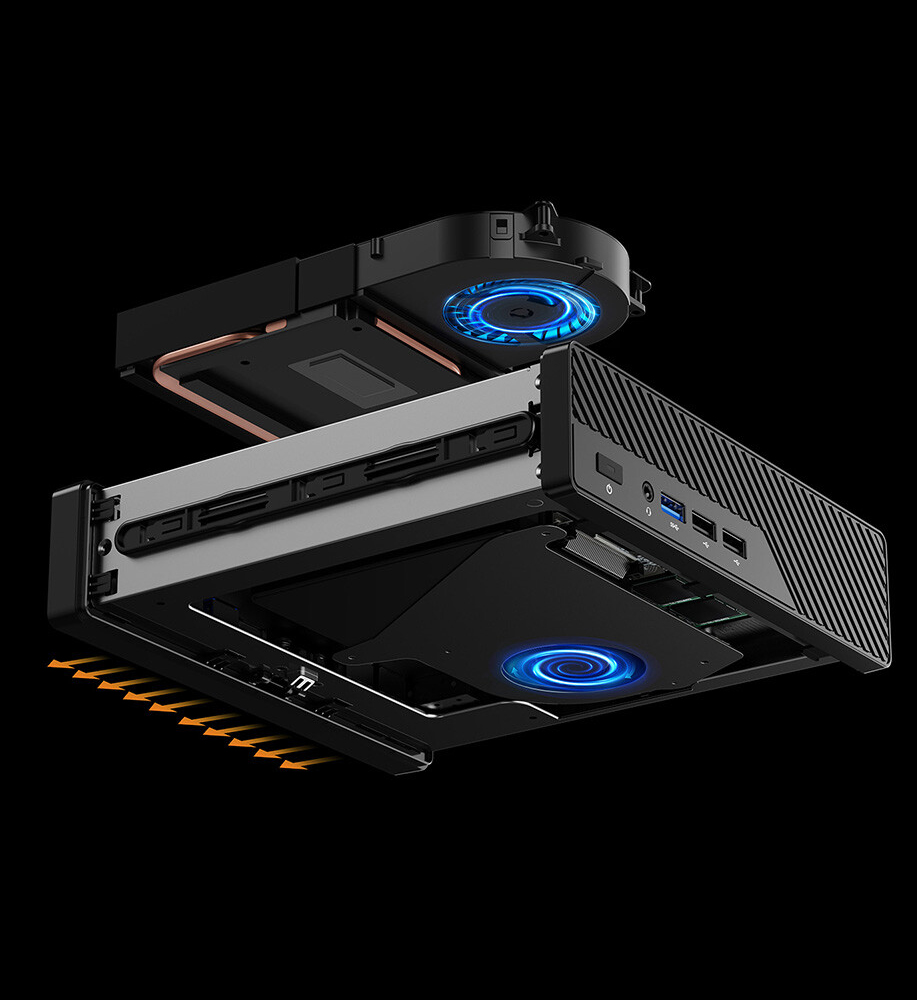 Jeśli chodzi o pamięć, MS-01 mini PC może pomieścić maksymalnie 64 GB pamięci RAM DDR5 (zestaw Crucial 64 GB obecnie 164 USD na Amazon). Posiada również solidną konfigurację chłodzenia z szybkim, cichym wentylatorem. Minisofrum twierdzi, że taka konfiguracja może zapewnić stabilną wydajność przy mocy do 80 W.