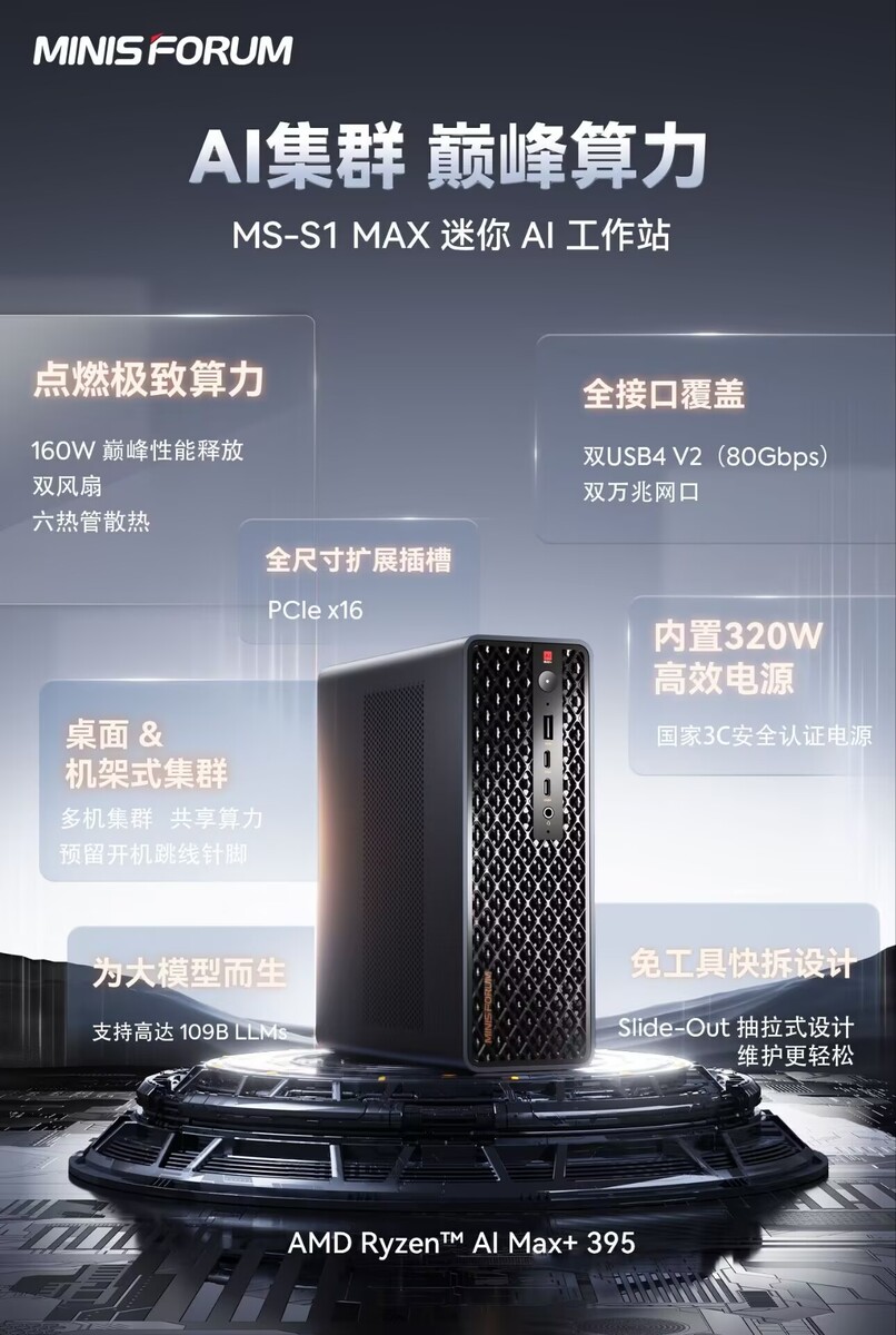 Widzieliśmy już sporo projektów wykorzystujących topowe układy Strix Halo Ryzen AI Max+ 395 APU od AMD zaprezentowanych przez producentów mini PC w ciągu ostatnich kilku miesięcy i wygląda na to, że dostępność jest nadal ograniczona, ponieważ bardzo niewiele firm sprzedaje obecnie takie modele. Minisforum jest zwykle jednym z pierwszych, którzy drażnią się z high-endowymi modelami, ale tym razem firma przez dłuższy czas ukrywała większość specyfikacji modelu Strix Halo. Niemniej jednak, być może było to warte opóźnienia, ponieważ model MS-S1 Max, który właśnie został zaprezentowany na chińskiej stronie, wydaje się być lepszy od wszystkiego, co widzieliśmy do tej pory, zwłaszcza pod względem mocy APU i wyboru portów.
