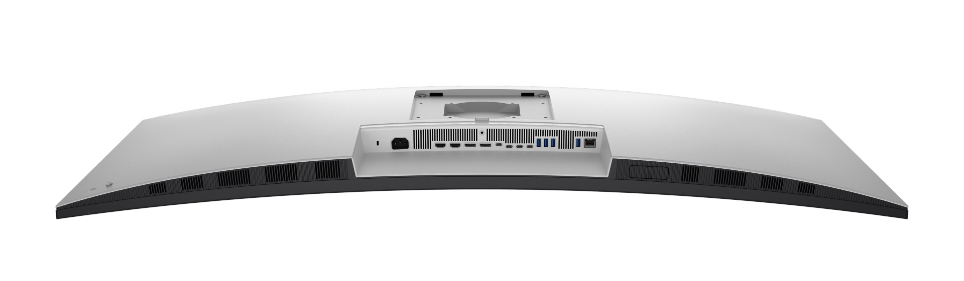 Monitor posiada również hub szybkiego dostępu z przodu, który zawiera dwa porty USB-C i jeden port USB-A, z których wszystkie obsługują porty USB 10 Gb/s do szybkiego przesyłania danych. Porty USB-C obsługują również ładowanie 27 W. Gdy nie są używane, porty szybkiego dostępu można schować. Inne funkcje monitora to wbudowane głośniki, czujnik oświetlenia otoczenia i opcjonalny uchwyt z zarządzaniem kablami.