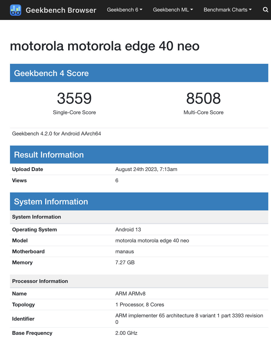 Edge 40 Neo pojawił się teraz na w Geekbenchniecałe dwa tygodnie po tym, jak Amazon Włochy ujawnił różne specyfikacje dotyczące urządzenia. Jak dotąd, tylko pojedynczy wynik pojawił się na stronie benchmarku. W związku z tym zazwyczaj zalecamy zachowanie ostrożności podczas przeglądania pojedynczego wyniku testu porównawczego.