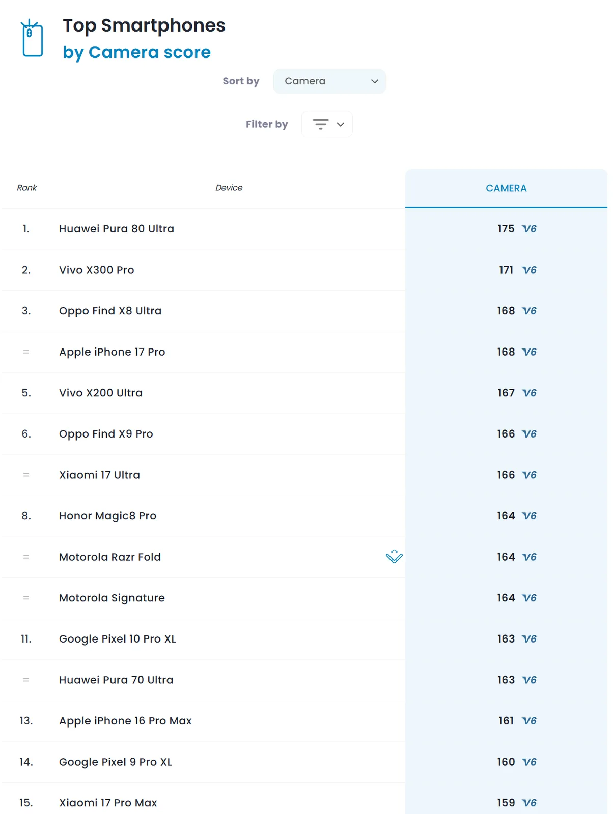 Jak pokazuje poniższa tabela, Razr Fold ustępuje tylko nowoczesnym flagowcom, takim jak iPhone 17 Pro, Find X9 Pro i Xiaomi 17 Ultra z wynikiem 164 punktów. Tymczasem Honor Magic V5 i Samsung Galaxy Z Fold7 znajdują się znacznie niżej na tej liście (obecnie 1,809 USD na Amazon). Po części wynik ten jest wspomagany przez mocne teleobiektywy i ultraszerokokątne aparaty Razr Fold, które często są gorsze od ich głównych odpowiedników w składanych urządzeniach.