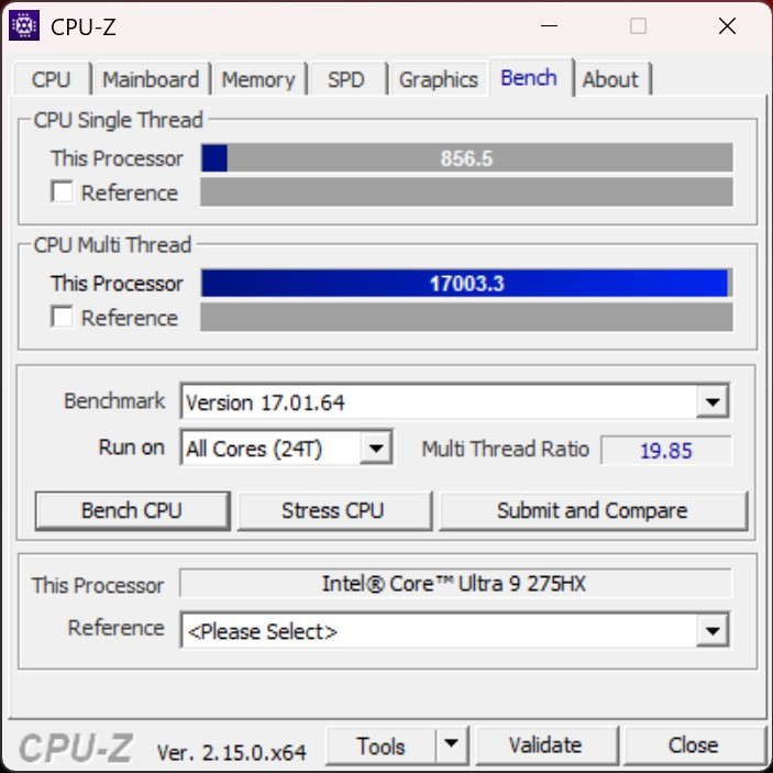 Intel Core Ultra 9 275HX to jeden z najlepszych procesorów, jakie Intel oferuje obecnie w sektorze mobilnym. Jest to również imponująco widoczne w naszych testach porównawczych procesorów, w których Asus ROG NUC 15 radzi sobie znakomicie. Zarówno wydajność jednordzeniowa, jak i wielordzeniowa są doskonałe i nie ujawniają żadnych słabych punktów. Nawet zupełnie nowy i niezwykle wydajny procesor AMD Ryzen AI Max+ 395 (w modelu Bosgame M5) często można pokonać.