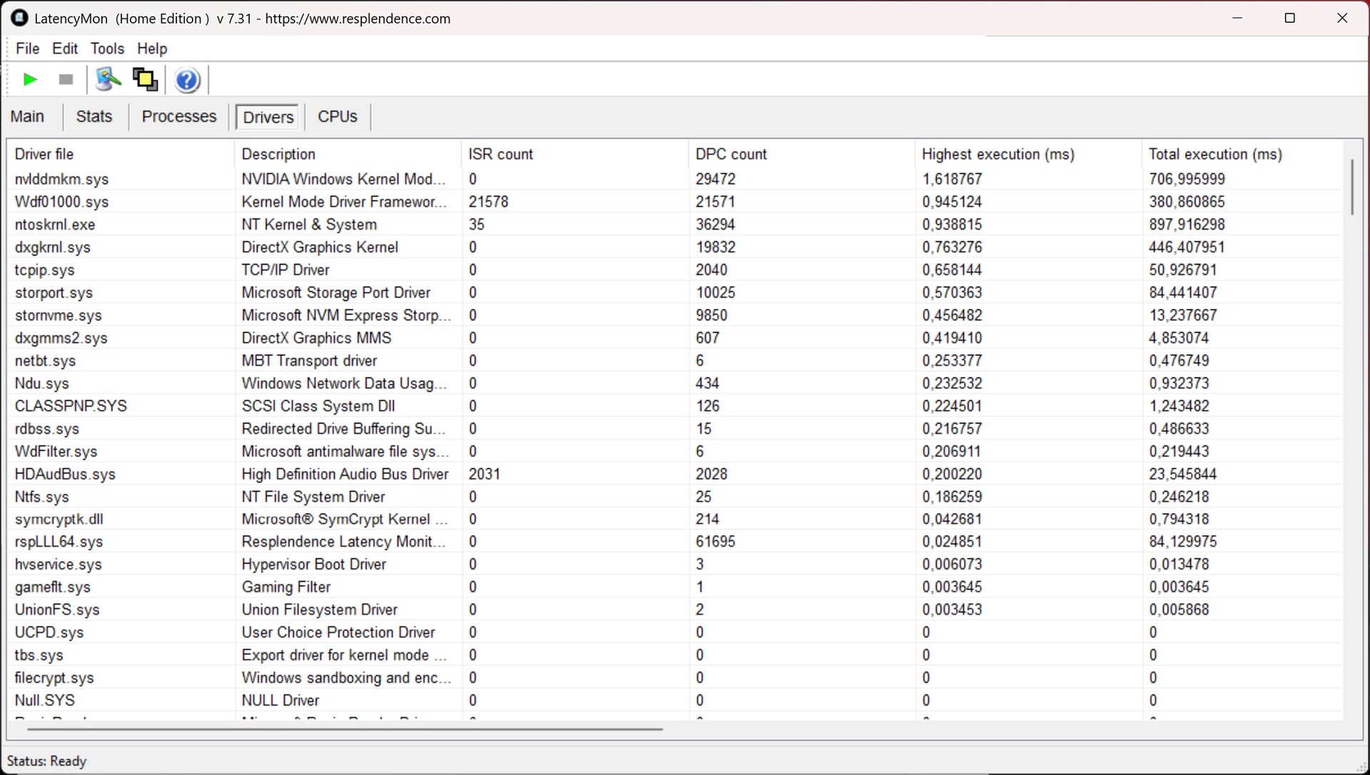 | DPC Latencies / LatencyMon - interrupt to process latency (max), Web, Youtube, Prime95 | |