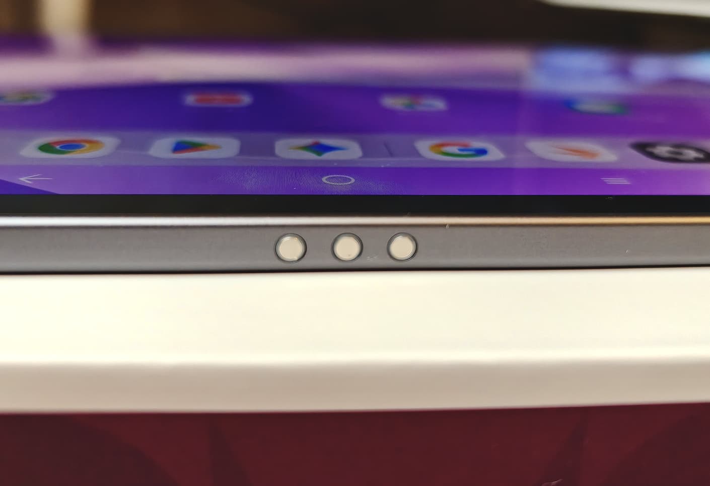 Przy 7 milimetrach (~0,3 cala) krawędzie wyświetlacza są dość wąskie, ale tablet nadal można pewnie trzymać i obsługiwać.