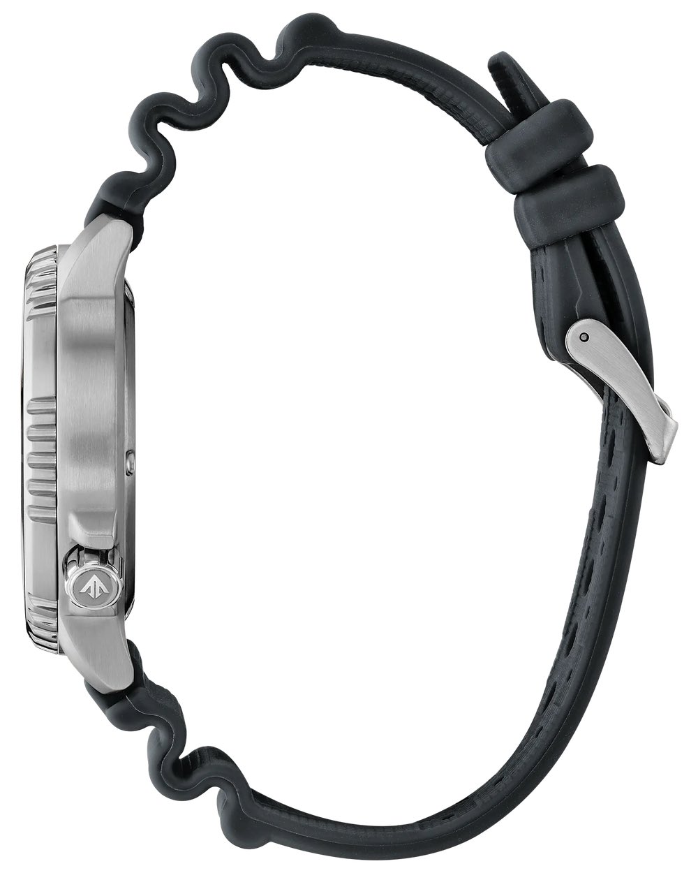 Inne szczegóły, takie jak wypełnione lumą indeksy i pogrubiona wskazówka, a także okienko daty na godzinie 3, są takie same jak w drugim modelu i pomagają zachować wyraźnie funkcjonalny charakter.