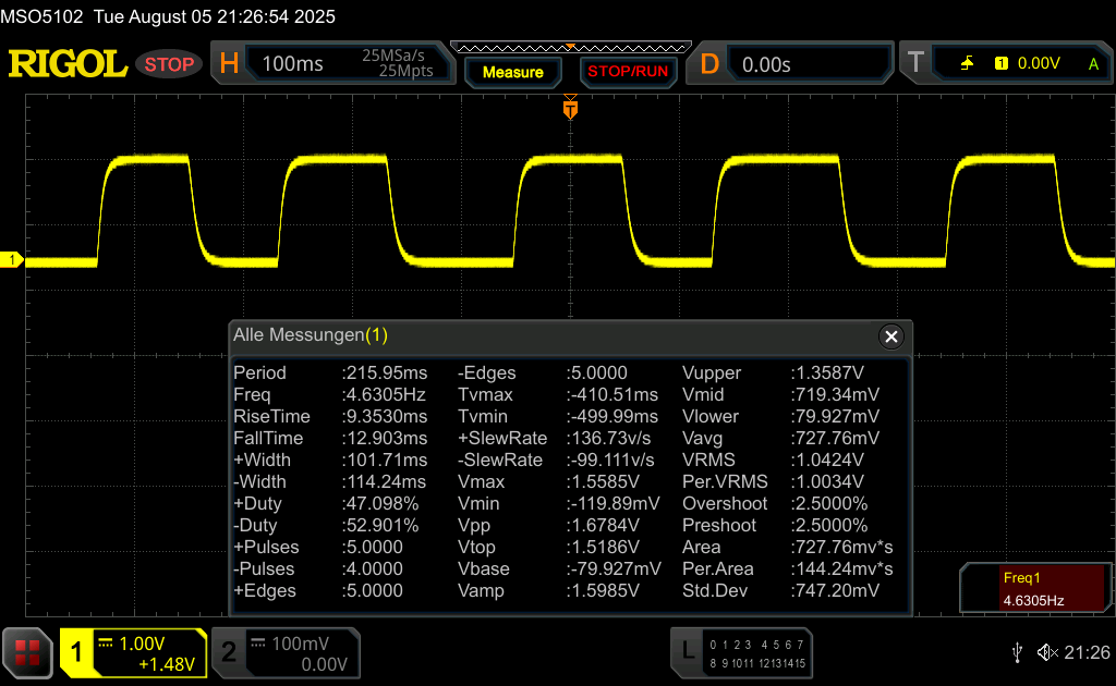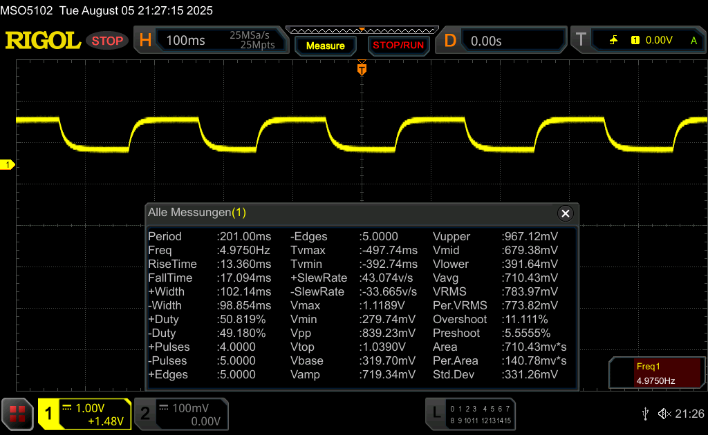 (+) | wzloty są liniowe (3.9% delta do poprzedniej częstotliwości)