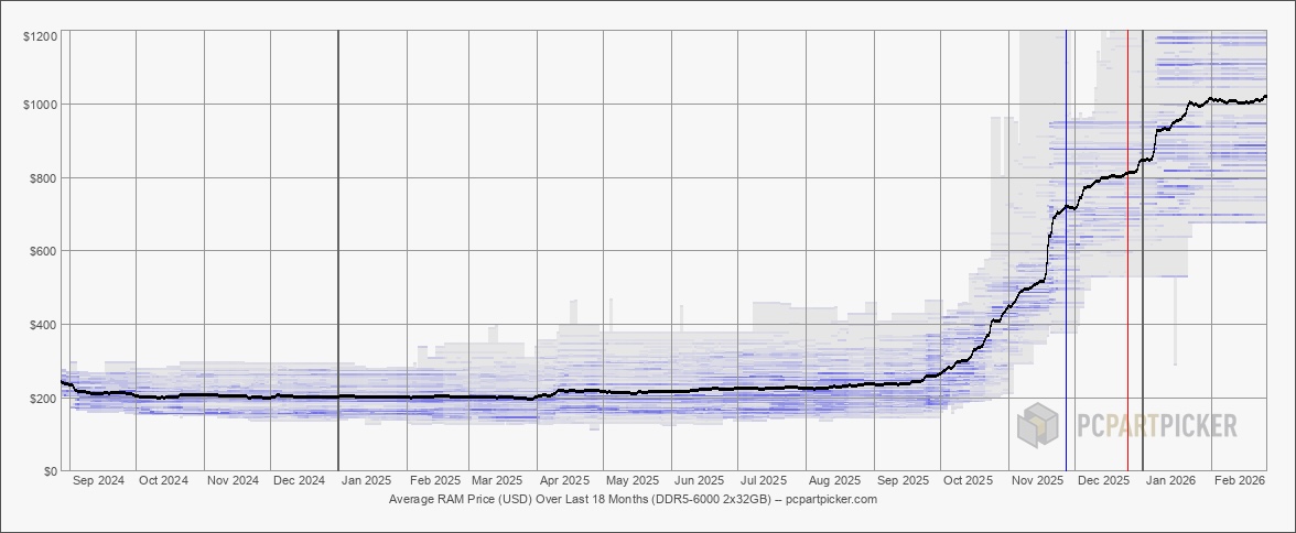 Ponieważ podaż prawdopodobnie pozostanie niewielka, ceny nadal będą poza zasięgiem wielu osób. Przykładowo, ceny pamięci RAM DDR5 gwałtownie wzrosły w ostatnich miesiącach, nawet pięciokrotnie w ciągu ostatniego roku. Jednak od stycznia nastąpił niewielki spadek od styczniaco wydaje się wskazywać, że rzeczywiście istnieje granica, po przekroczeniu której konsumenci po prostu odmówią płacenia.