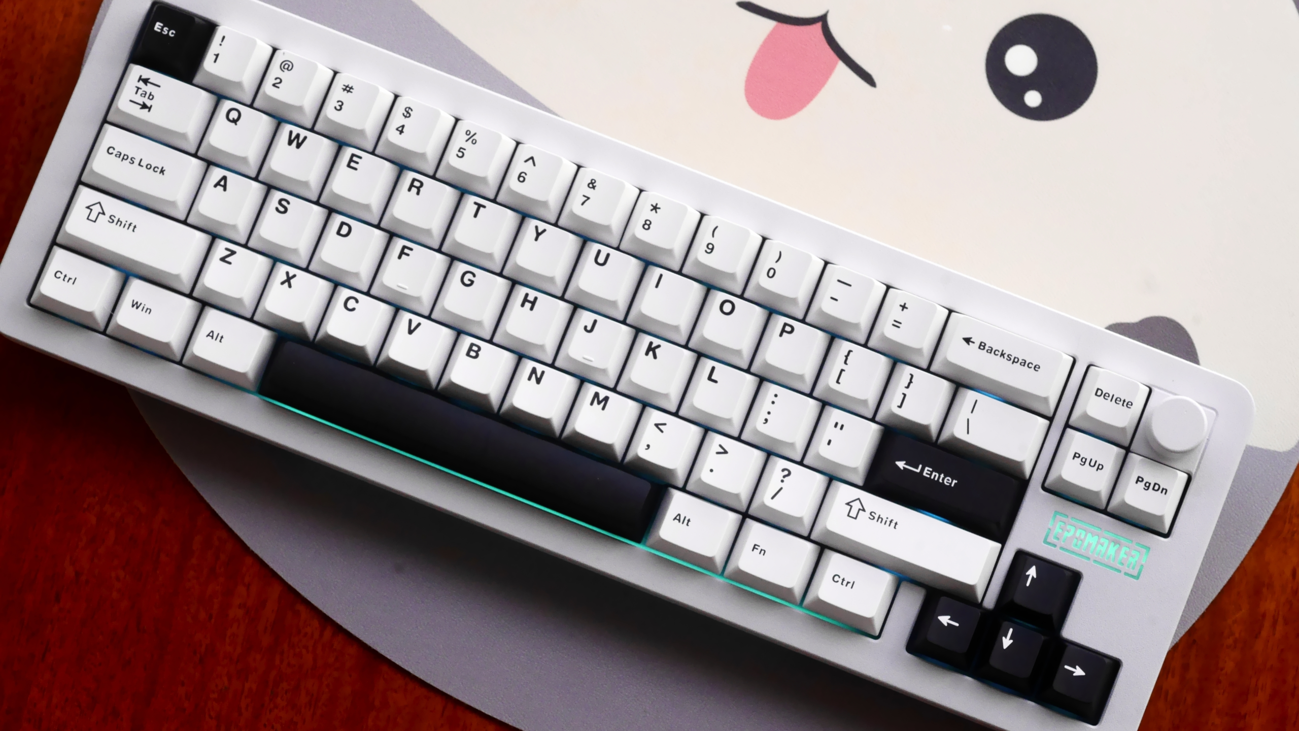 Epomaker Galaxy68 to 68-klawiszowa (65%) klawiatura mechaniczna z podwójnymi nakładkami na klawisze PBT o profilu Cherry, malowaną proszkowo aluminiową obudową z uszczelką montażową i konfigurowalnym pokrętłem głośności. Przełączniki Feker Marble White w naszym recenzowanym egzemplarzu mają lekką siłę aktywacji, a klawiatura oferuje łączność w trzech trybach.