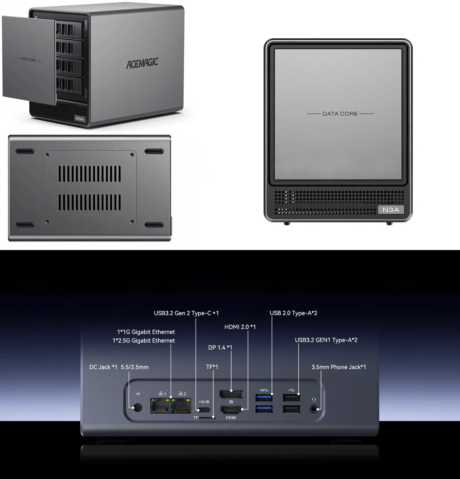 Acemagic wprowadził na rynek hybrydę mini PC i NAS N3A. Został on ogłoszony w lutym 2026 roku i pierwotnie miał być zasilany przez AMD Ryzen 7 3750H. Firma zamieniła jednak ten procesor na Embedded R2544.