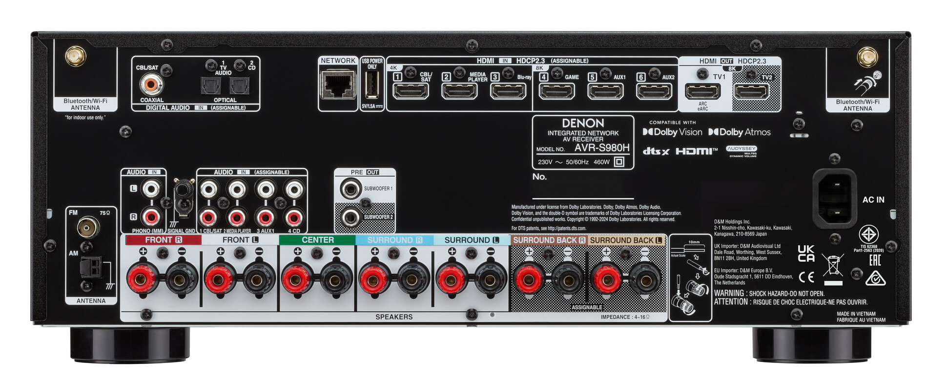 Denon obiecuje łatwą konfigurację w zaledwie kilku krokach dla AVR-S980H, mając na celu wprowadzenie dźwięku kina domowego do salonu bez komplikacji. Amplituner AV zapewnia w tym celu 7.2 kanałów; gdy jest używany z Dolby Atmos, może być na przykład obsługiwany w konfiguracji 5.2.2-kanałowej z dwoma subwooferami i dwoma głośnikami sufitowymi. Wzmacniacz zapewnia 90 W na kanał, co powinno stanowić wystarczającą moc dla kina domowego w salonie.