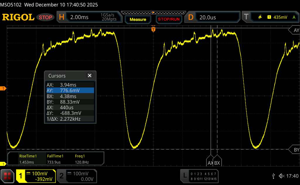 (+) | wzloty są liniowe (1.4% delta do poprzedniej częstotliwości)