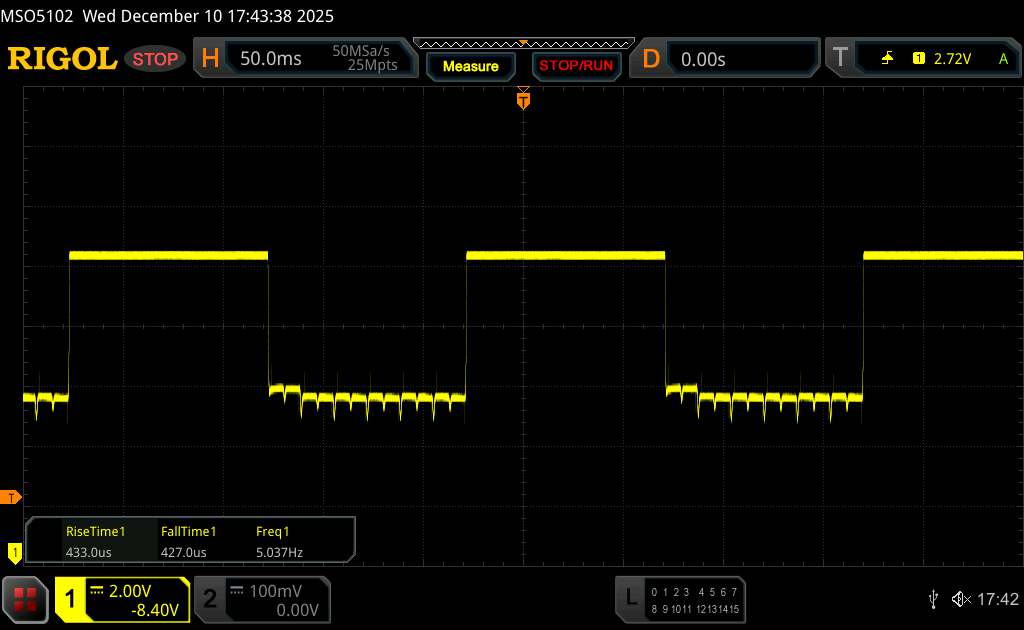 Podobnie jak w przypadku F8 Propoco wymienia w specyfikacji ściemnianie DC do regulacji jasności. Pod oscyloskopem okazuje się jednak, że jest to ściemnianie PWM o wysokiej częstotliwości i niskiej częstotliwości bazowej. W rezultacie wyświetlacz jest stosunkowo łatwy dla oczu, ale nie jest całkowicie wolny od migotania.