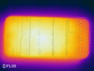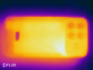(-) Maksymalna temperatura w górnej części wynosi 49.8 °C / 122 F, w porównaniu do średniej 35.2 °C / 95 F , począwszy od 21.9 do 247 °C dla klasy Smartphone.