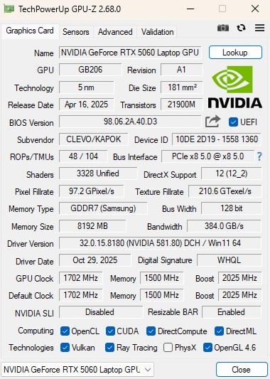 | Tulpar T6 V3.5 Intel Core i7-14700HX ⎘ NVIDIA GeForce RTX 5060 Laptop ⎘ 32 GB Pamięć, 1000 GB SSD | Cena katalogowa: 1160 EUR | 2.4 kg | 25 mm | 16.00" 1920x1200 142 PPI IPS | |