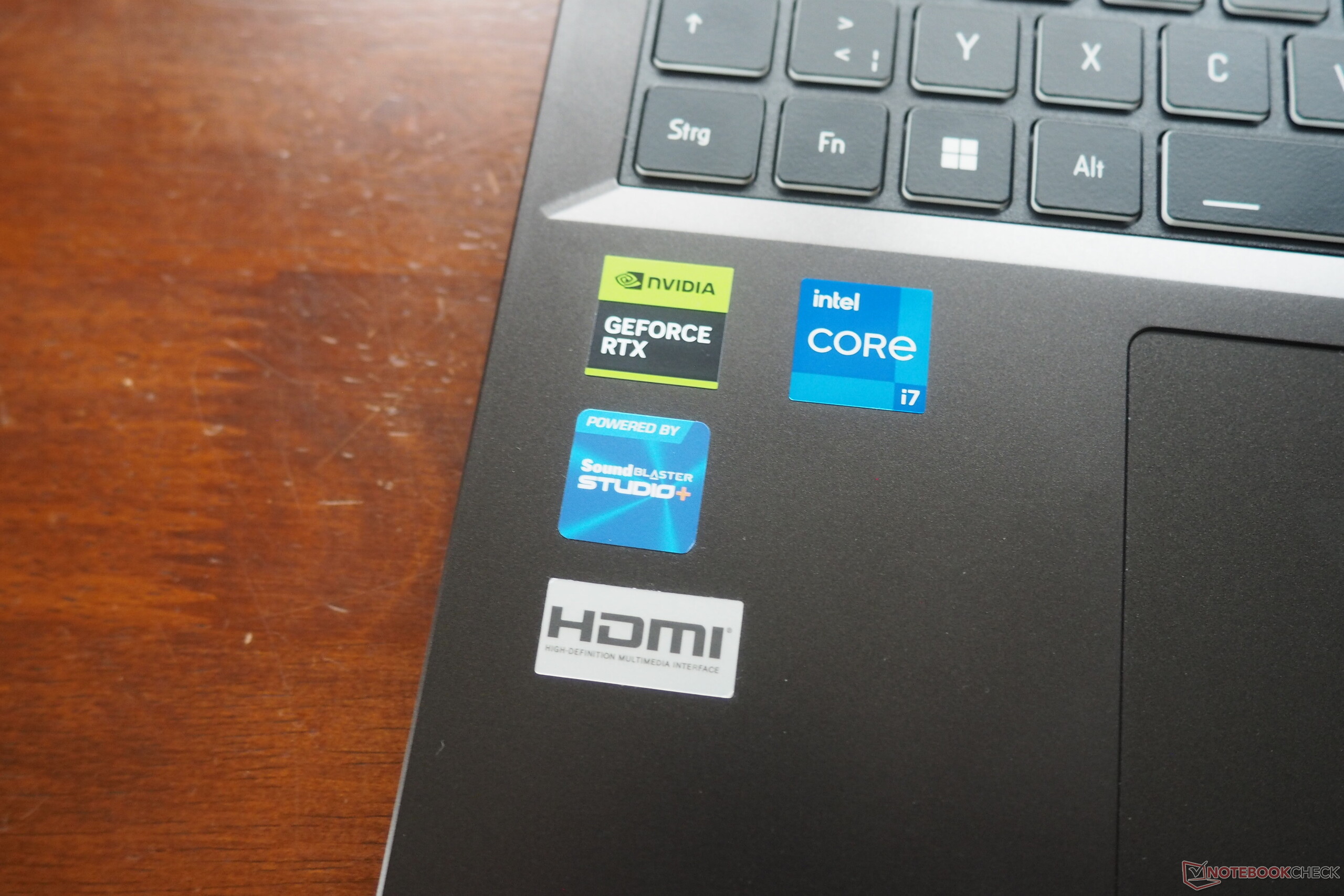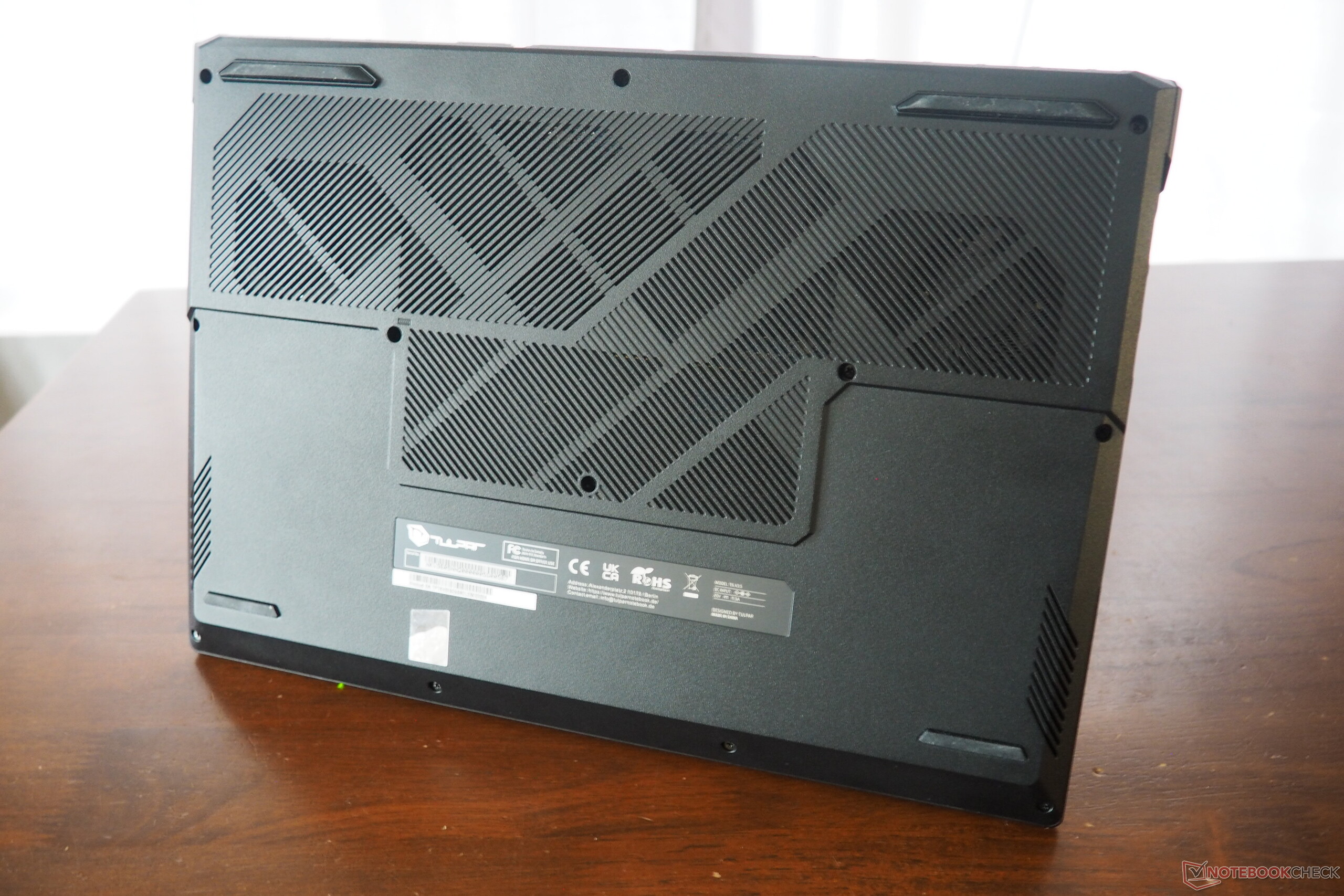 Plastikowa obudowa zapewnia więcej niż przyzwoitą stabilność i jest starannie wykończona w większości obszarów. Zawiasy działają w większości dyskretnie, chociaż maksymalny kąt otwarcia wynoszący około 135° nie jest szczególnie duży. Ciemnoszare powierzchnie nadają laptopowi dość dyskretny wygląd, o ile podświetlenie klawiatury jest wyłączone.