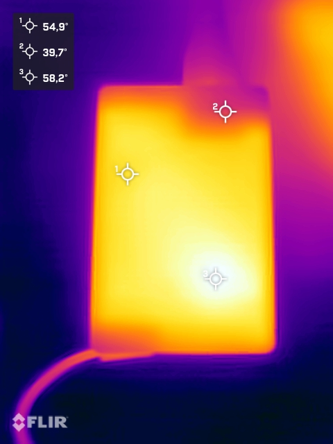 (+) Dno nagrzewa się maksymalnie do 34.6 °C / 94 F, w porównaniu do średniej 36.5 °C / 98 F