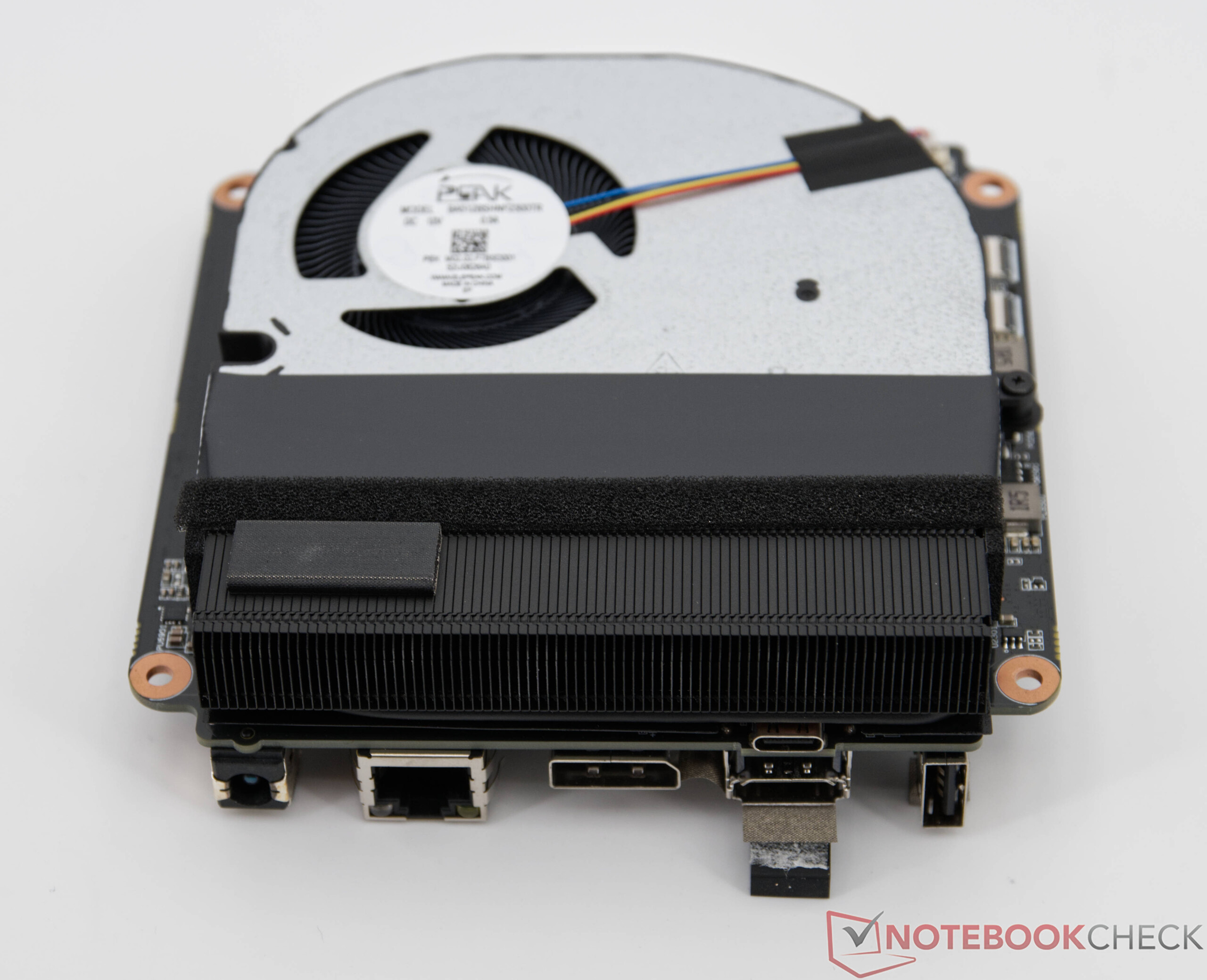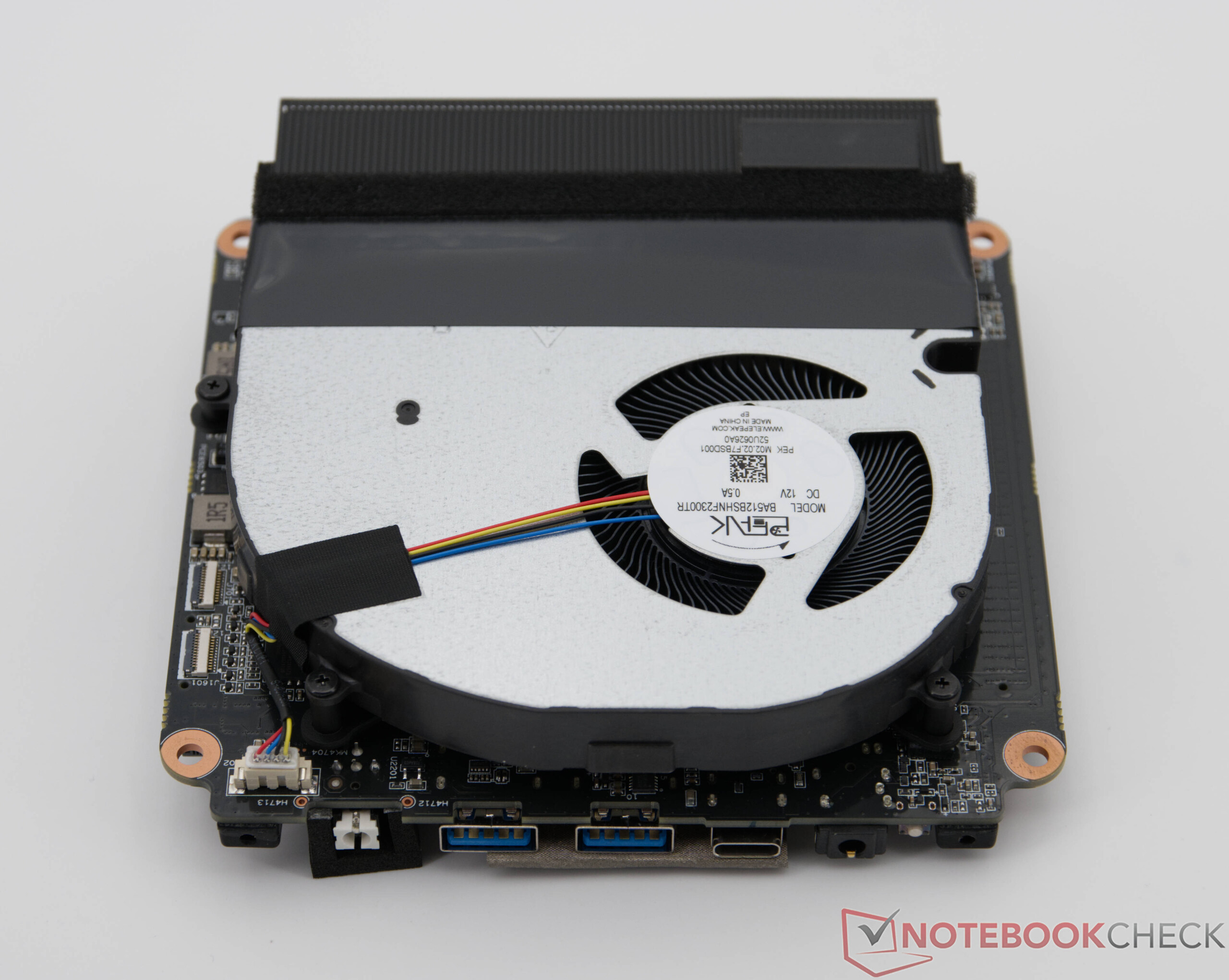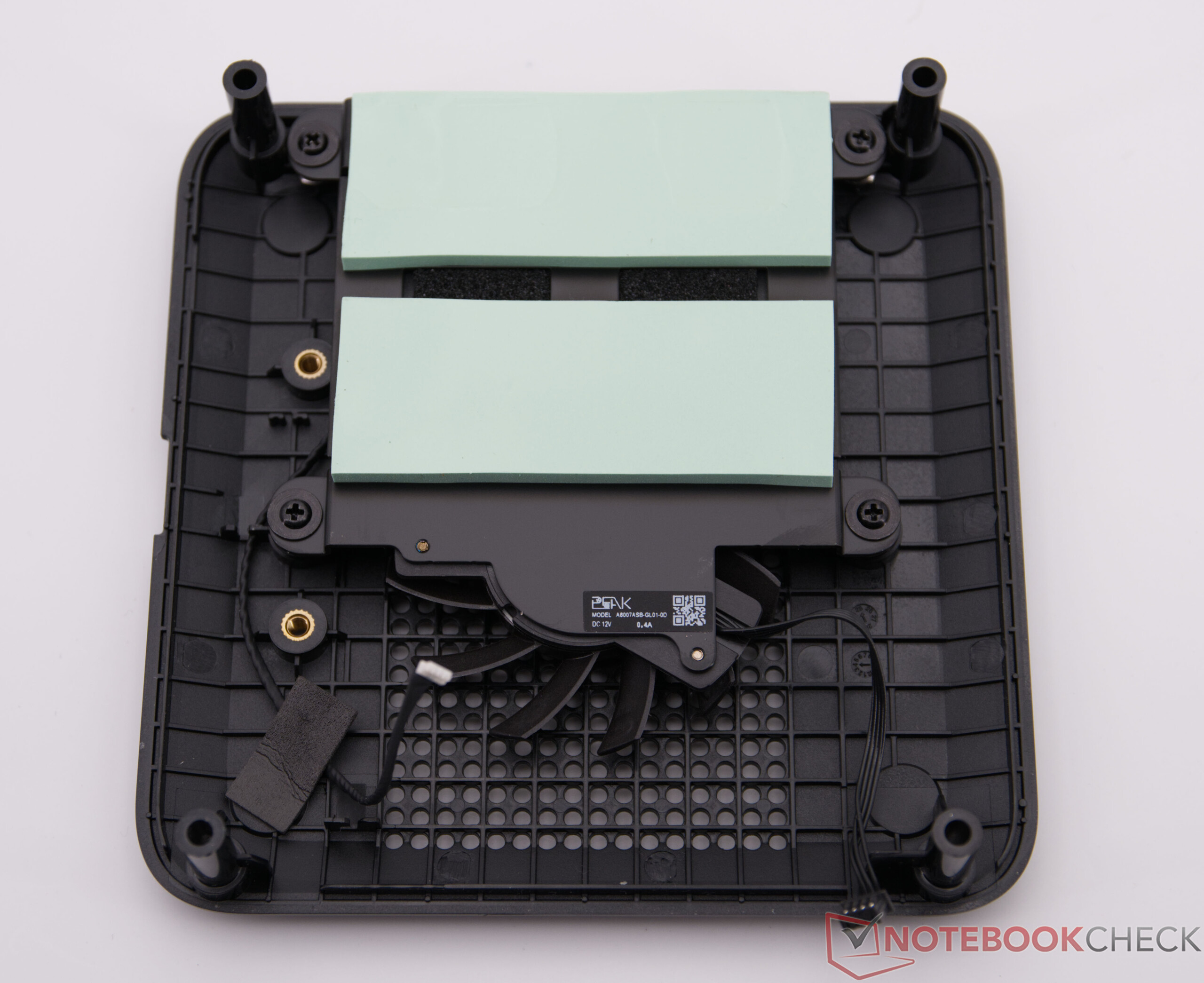Minisforum AI X1 wykorzystuje dysk SSD o pojemności 1 TB firmy Kingston ze złączem PCIe 4.0 x4, które oferuje niezawodne, choć nie wybitne, prędkości transferu. Aktywne chłodzenie zapewnia również stale stabilną wydajność i zapobiega spadkom podczas długotrwałego obciążenia. Dla pamięci masowej dostępne są dwa gniazda M.2, ale gdy używany jest adapter OCuLink, tylko jedno z nich może być zajęte.