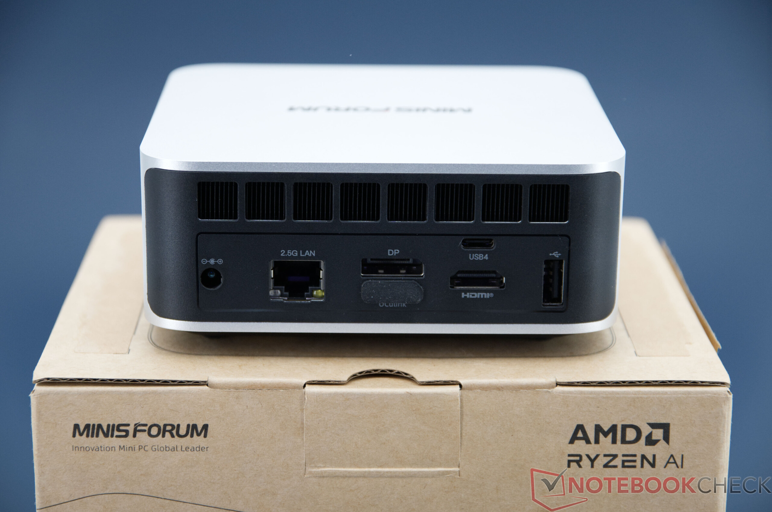 Mini PC oferuje wszechstronną łączność: dwa porty USB4 z połączeniami PCIe 4.0 x4 umożliwiają bardzo wysoką szybkość transmisji danych, a dodatkowe gniazdo M.2 może być opcjonalnie używane jako OCuLink dla zewnętrznych procesorów graficznych. Można również kontrolować do czterech wyświetlaczy, port LAN 2,5 Gbit/s zapewnia szybkie połączenia, a WiFi 7 dodaje potężną sieć bezprzewodową do miksu.