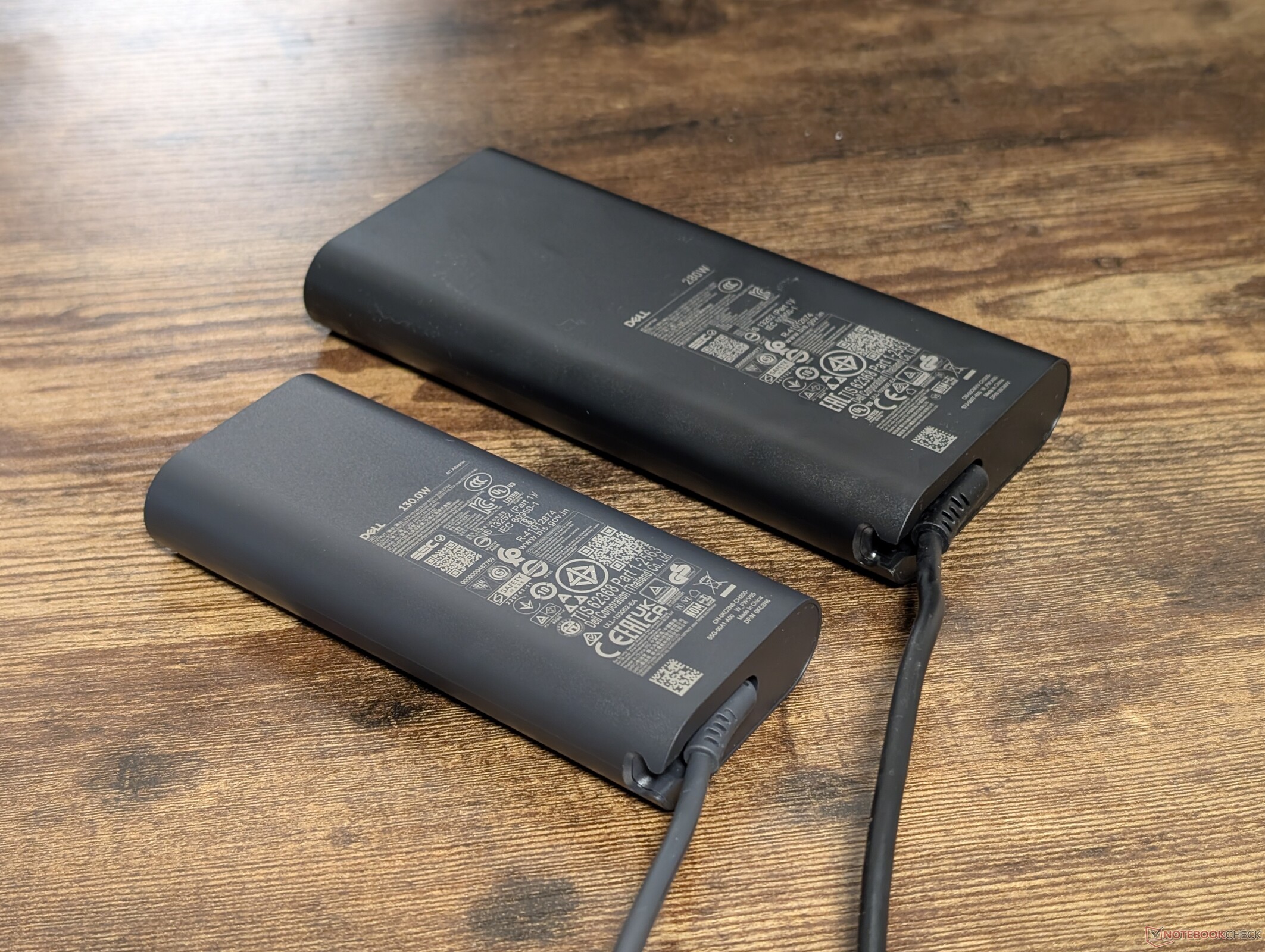 The Dell 16 Premium jest godnym uwagi przykładem wydajnego laptopa zasilanego przez stosunkowo niewielki (~12,8 x 5,5 x 2,3 cm) zasilacz USB-C o mocy 130 W. Większość innych laptopów z podobnymi konfiguracjami Core Ultra H i GeForce RTX GPU jest zwykle dostarczana z większymi zasilaczami sieciowymi typu beczkowego, takimi jak te od MSI. Najbliższym konkurentem Lenovo dla Dell 16 Premium jest Yoga Pro 9i 16 który jest dostarczany z większym, ale bardziej wydajnym zasilaczem sieciowym USB-C o mocy 170 W, aby wycisnąć większą wydajność z podobnych konfiguracji Core Ultra H i GeForce RTX.