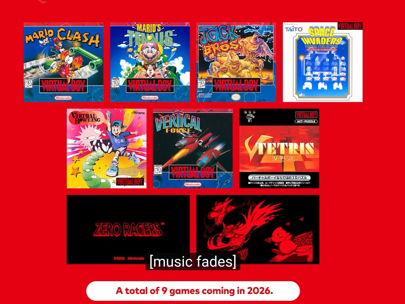 Inne gry, które według Nintendo zostaną dodane w dalszej części roku, to Mario Clash, Mario Tennis, Jack Bros., Space Invaders Virtual Collection, Virtual Bowling, Vertical Force i V-Tetris. Nintendo wyda również dodatkowe tytuły, które nie zostały pierwotnie wydane, gdy Virtual Boy został pierwotnie uruchomiony w 1995 roku. Te gry to Zero Racers i D-Hopper, które również zostaną wydane w tym roku.