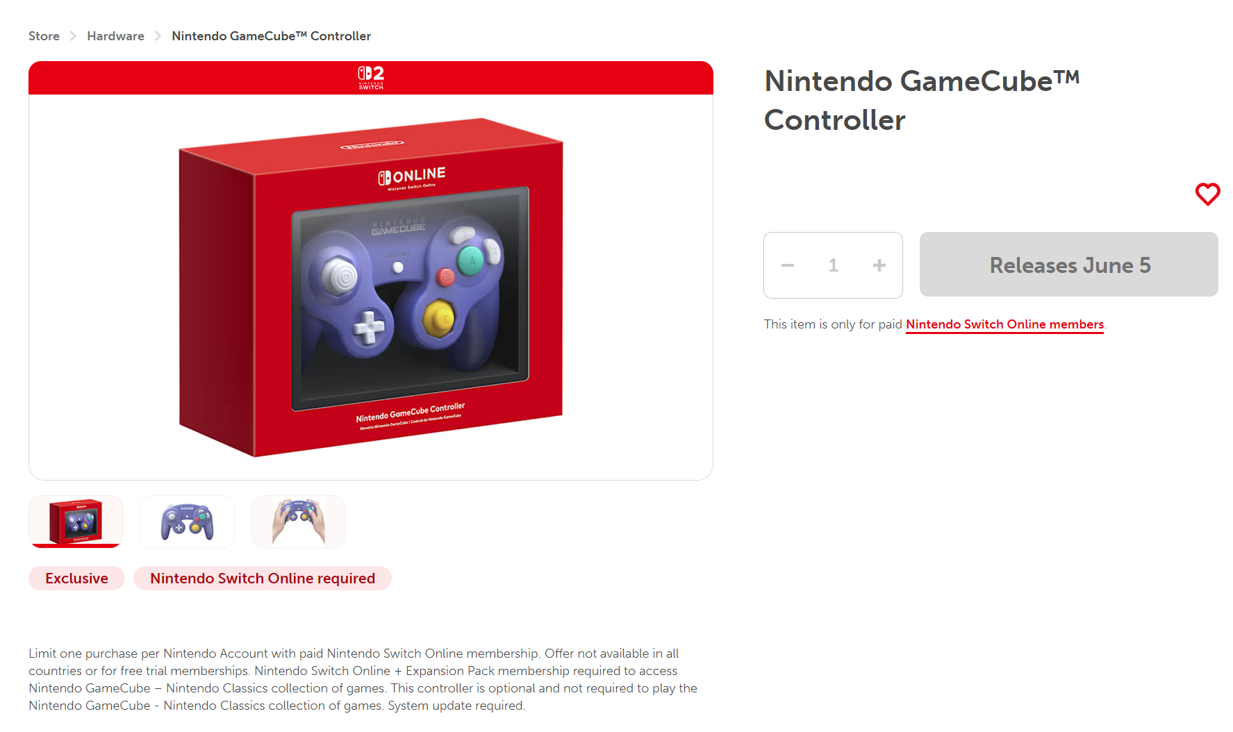 Począwszy od 8 maja, zarejestrowani posiadacze kont Nintendo mogą mieć szansę na zarezerwowanie Switch 2. Jednocześnie gracze ci mogą zamówić kontroler GameCube. Po 12 maja akcesorium stanie się dostępne dla większej liczby subskrybentów Switch Online. Dodatek zostanie dostarczony 5 czerwca, co jest również datą premiery Switch 2.