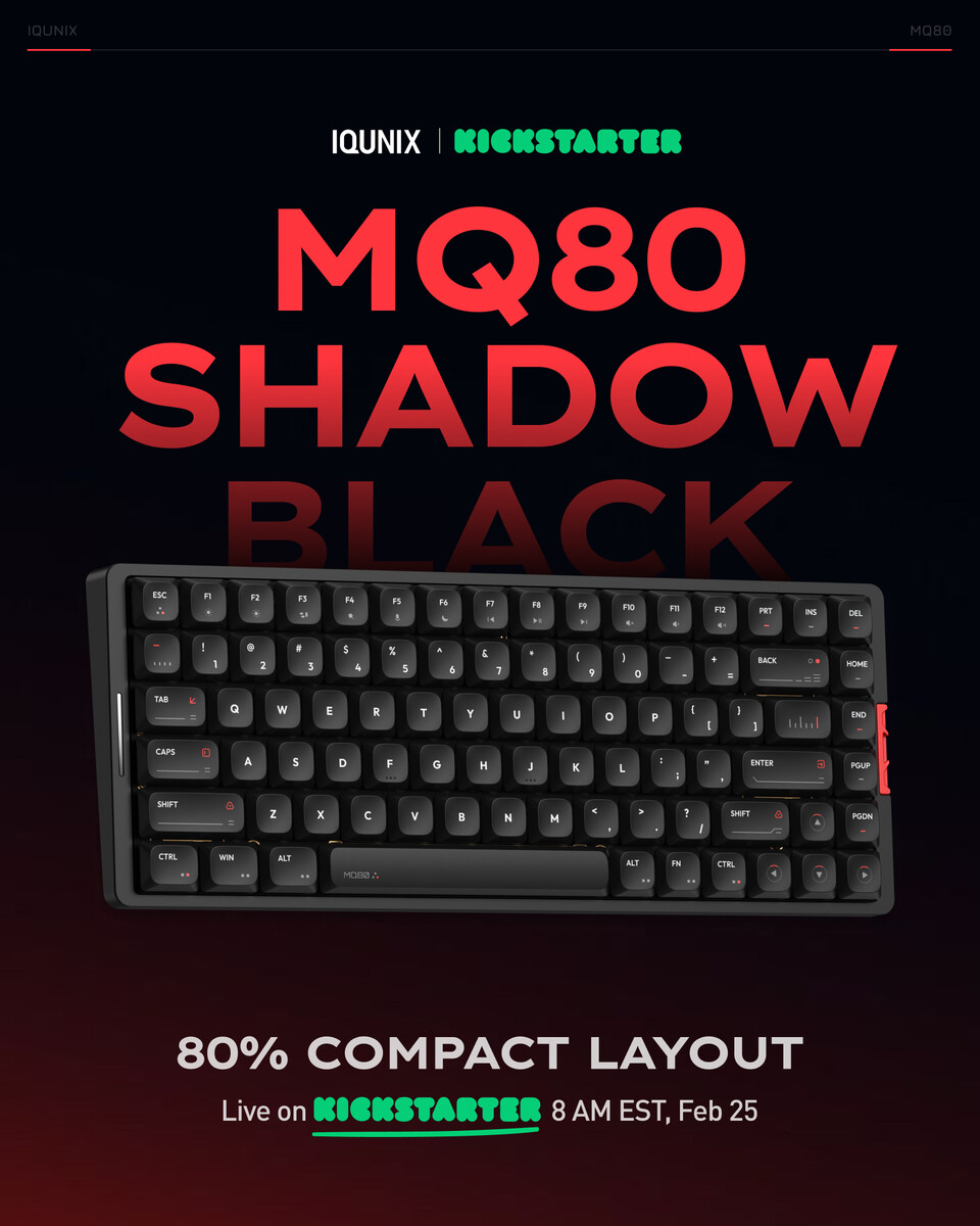 Iqunix oficjalnie uruchomił MQ80 na Kickstarterzeujawniając przy okazji więcej informacji na temat nowej, w 80% niskoprofilowej klawiatury mechanicznej i jej imponującego pakietu akcesoriów. Podczas gdy 50% zniżka Super Early Bird została już wyprzedana, w chwili pisania tego tekstu wciąż dostępnych jest ponad 200 sztuk w 40% obniżonej cenie Early Bird, co daje łączną cenę zaledwie 119 USD. Wszystkie zamówienia w przedsprzedaży złożone na stronie Kickstarter będą również obejmować bezpłatną wysyłkę do "dowolnego miejsca na świecie"