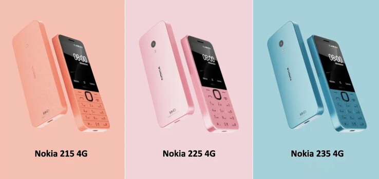 Jak pokazuje poniższy obrazek, pozostałe dwa modele to Nokia 215 4G i Nokia 235 4G. Chociaż na pierwszy rzut oka może być trudno odróżnić to trio, HMD Global próbowało rozróżnić je w różnych obszarach. Na przykład Nokia 215 4G jest jedynym z trzech, który nie ma kamer. Tymczasem Nokia 225 4G jest jedynym przedstawicielem serii wyposażonym w 2,4-calowy wyświetlacz.