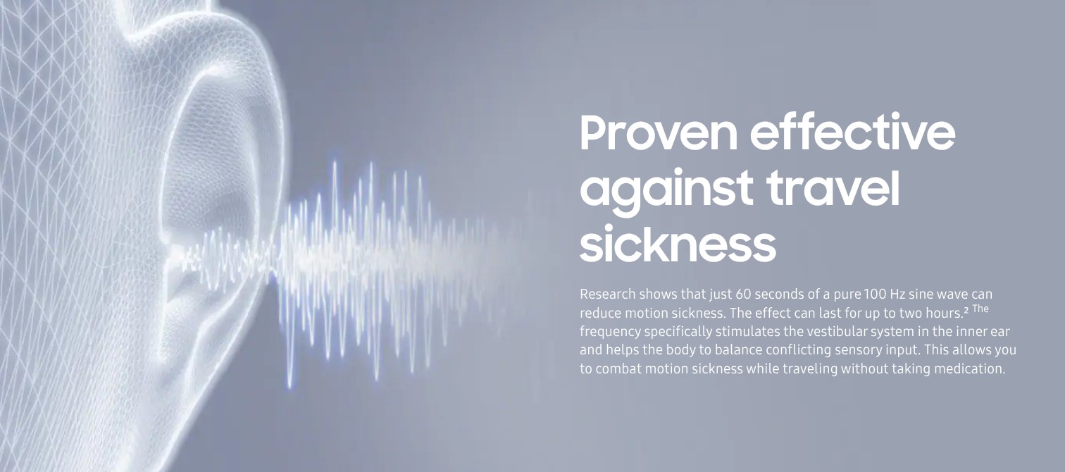 W swoim komunikacie prasowym Samsung twierdzi, że rozwój opiera się na odkryciach Uniwersytetu Nagoya w Japonii, gdzie naukowcy przeprowadzili eksperyment w celu ustalenia, który ton najskuteczniej stymuluje układ przedsionkowy. Okazało się, że słuchanie tonu o częstotliwości 100 Hz i głośności od 80 do 85 dB przez minutę pomaga poprawić równowagę. Działa to jednak tylko wtedy, gdy muzyka lub inne dźwięki nie zakłócają fali sinusoidalnej.