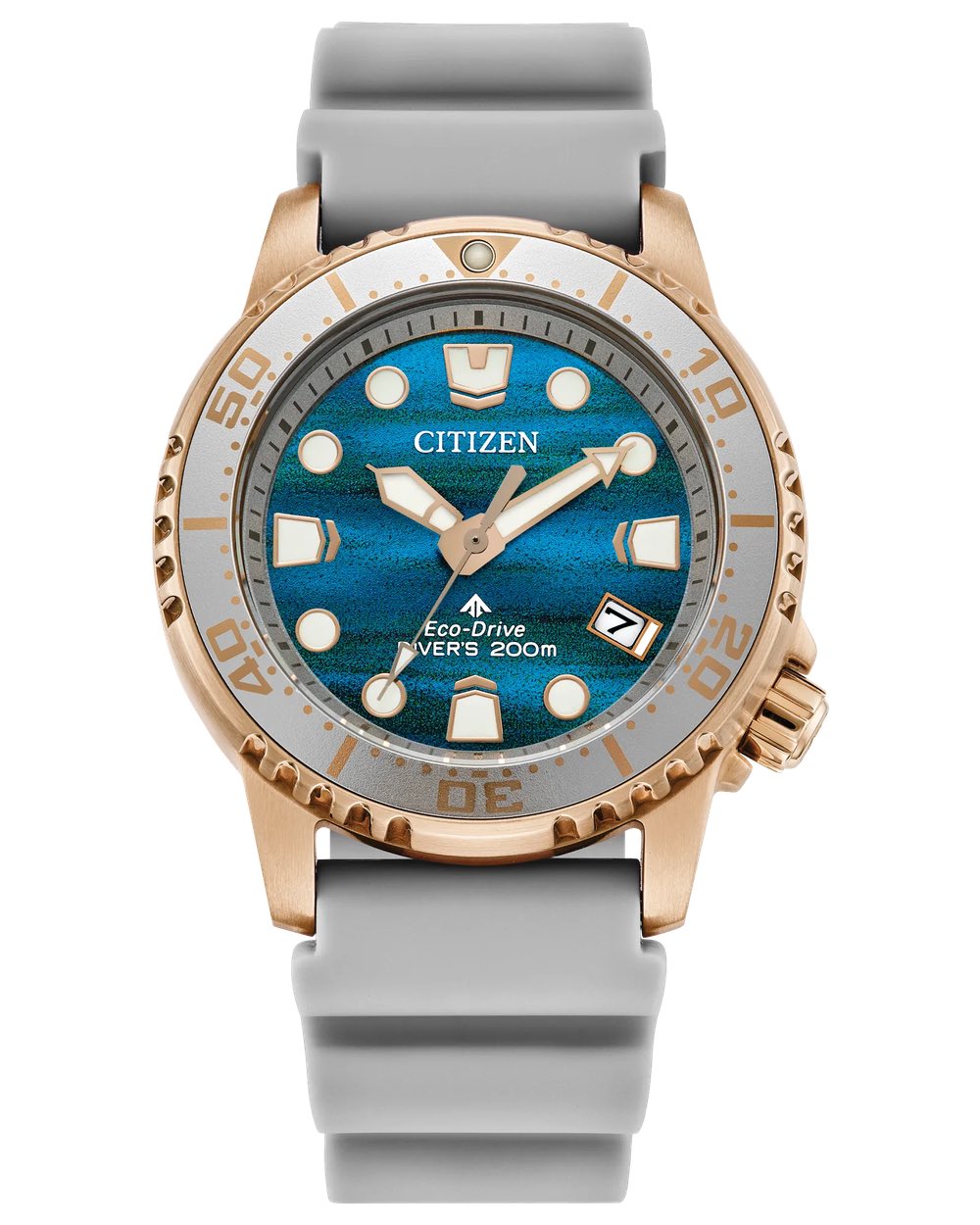 Zegarek jest zasilany przez wewnętrzny mechanizm Citizen Eco-Drive E168, który utrzymuje zegarek naładowany z dowolnego źródła światła i eliminuje potrzebę wymiany baterii. Zegarek ma kompaktową 36,5 mm kopertę ze stali nierdzewnej w kolorze różowego złota, co czyni go jedną z bardziej poręcznych opcji nurkowania w ofercie Citizen, szczególnie dla mniejszych nadgarstków, i jest wyposażony w pasek PU BENEBiOL wykonany z materiału pochodzenia roślinnego.