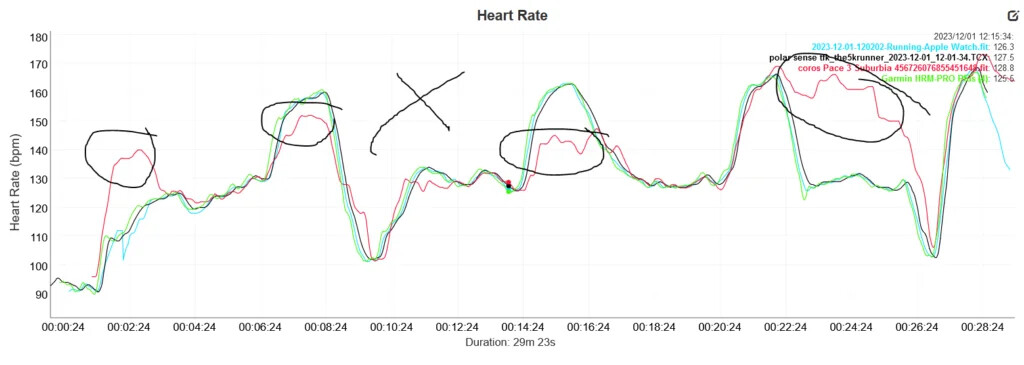 Dokładność pomiaru tętna smartwatcha Coros Pace 3 została przetestowana w nowym badaniu. The5krunner przeprowadził eksperyment, porównując wydajność urządzenia do noszenia Coros z zegarkiem Apple, urządzeniem Garmin HRM-Pro Plus i pasami piersiowymi Polar Verity Sense.