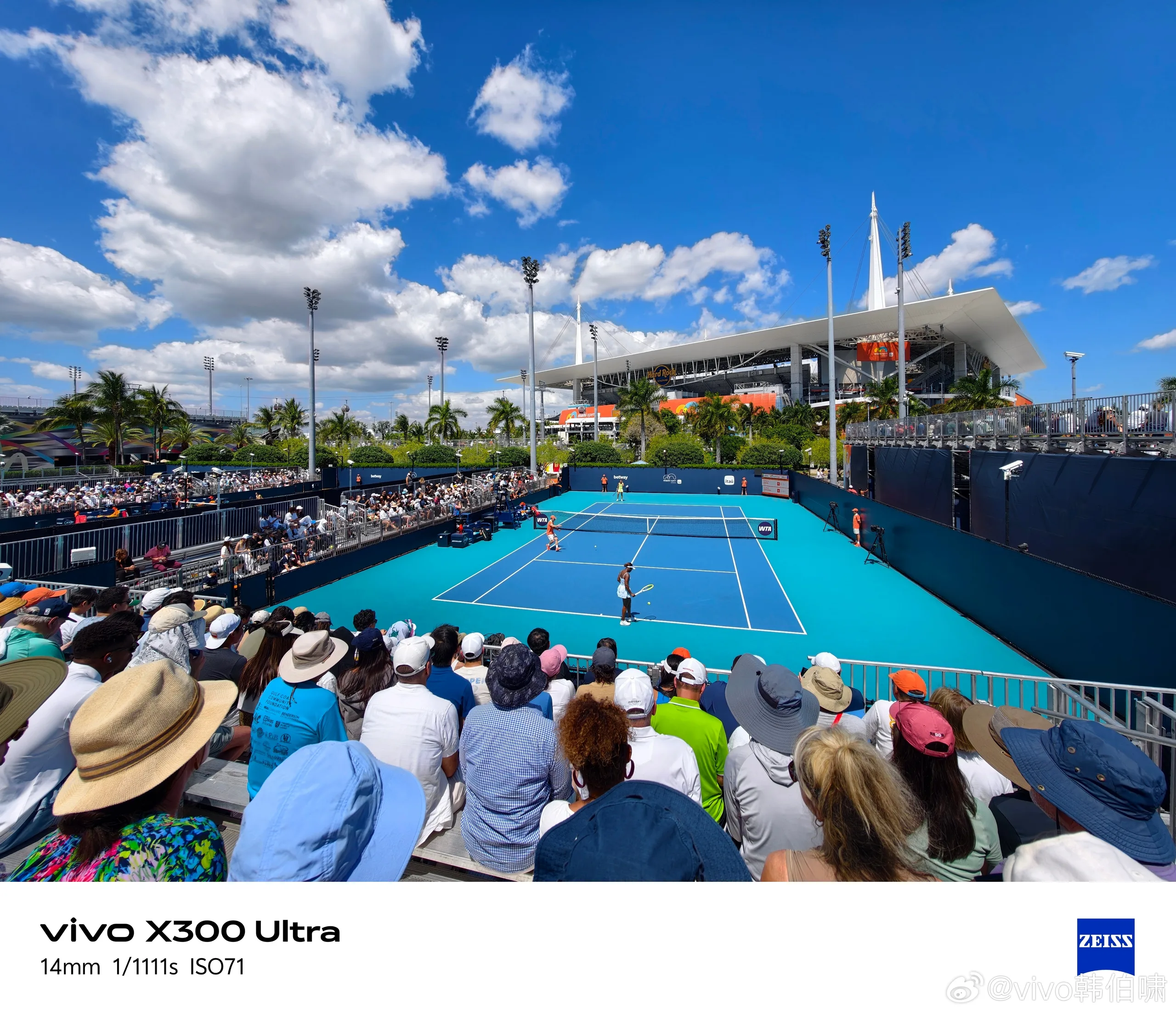 Po obejrzeniu imponujących zdjęć koncertowych wykonanych z telekonwerterem 400 mm, Vivo X300 Ultra został również użyty podczas turnieju Miami Open, gdzie jeden z zawodników został sfotografowany z dużej odległości przy użyciu teleobiektywu optycznego
