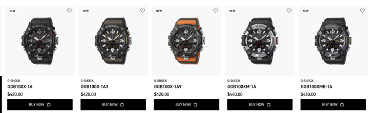 Główne różnice między modelami dotyczą materiałów zewnętrznych i stylistyki. Standardowe warianty GGB100X wykorzystują ramki z włókna węglowego i komponenty z żywicy biologicznej, podczas gdy modele GGB100XM i GGB100XMB dodają ramki ze stali nierdzewnej ze szczotkowanymi lub jonowymi wykończeniami, aby uzyskać bardziej ekskluzywny wygląd. Wszystkie pięć wariantów można obecnie nabyć bezpośrednio od Casio w cenie od 420 USD.