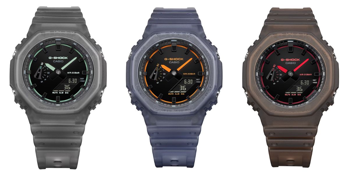 Zegarki Casio G-Shock GA-2100K są inspirowane klubami nocnymi i festiwalami muzycznymi, z wykończeniem przypominającym dym na przezroczystej obudowie i pasku z żywicy. Dodatkowo, neonowe akcenty reprezentują oświetlenie laserowe często używane w tych miejscach. Model GA-2100K-1A jest szary z turkusowymi akcentami, GA-2100K-2A jest niebieski z pomarańczowymi akcentami, a GA-2100K-5A jest brązowo-pomarańczowy z czerwonymi akcentami.
