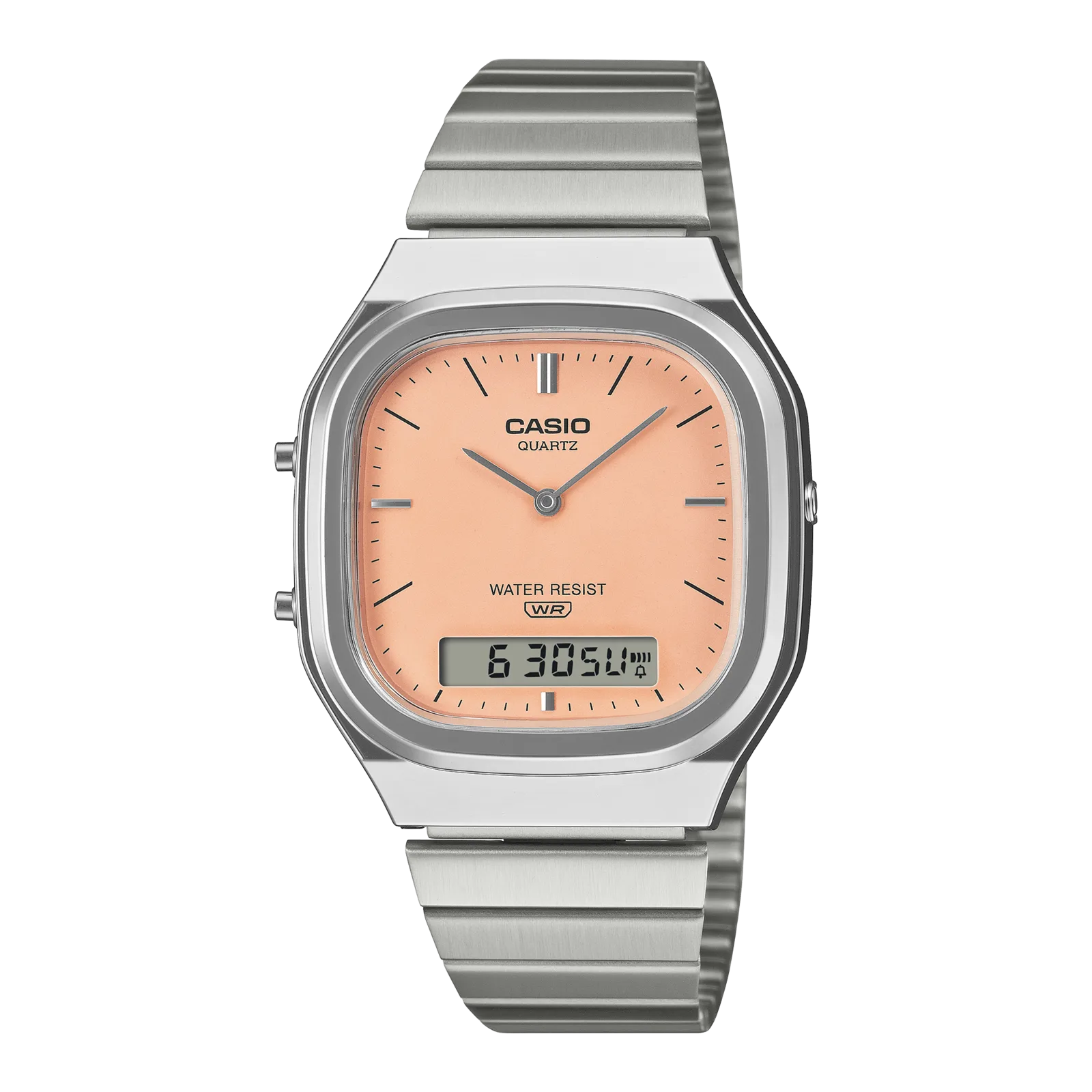 Wszystkie trzy zegarki wykorzystują delikatne pastelowe tarcze: jasnoniebieskie wykończenie sunburst w 2A, matowy pomarańczowy odcień w 4A i stonowany białawy wygląd w 7A2. Układ pozostaje taki sam we wszystkich modelach, z dwoma analogowymi wskazówkami i wąskim wyświetlaczem cyfrowym na godzinie 6. Obudowa ma wymiary 40,9 × 35,8 × 8,1 mm i waży około 51 gramów. Wykorzystuje ona chromowaną konstrukcję z żywicy w połączeniu z bransoletą ze stali nierdzewnej. Projekt obejmuje zaokrąglony kwadratowy kształt, który nadaje mu bardziej miękki wygląd w porównaniu do ostrzejszych klasycznych obudów Casio.