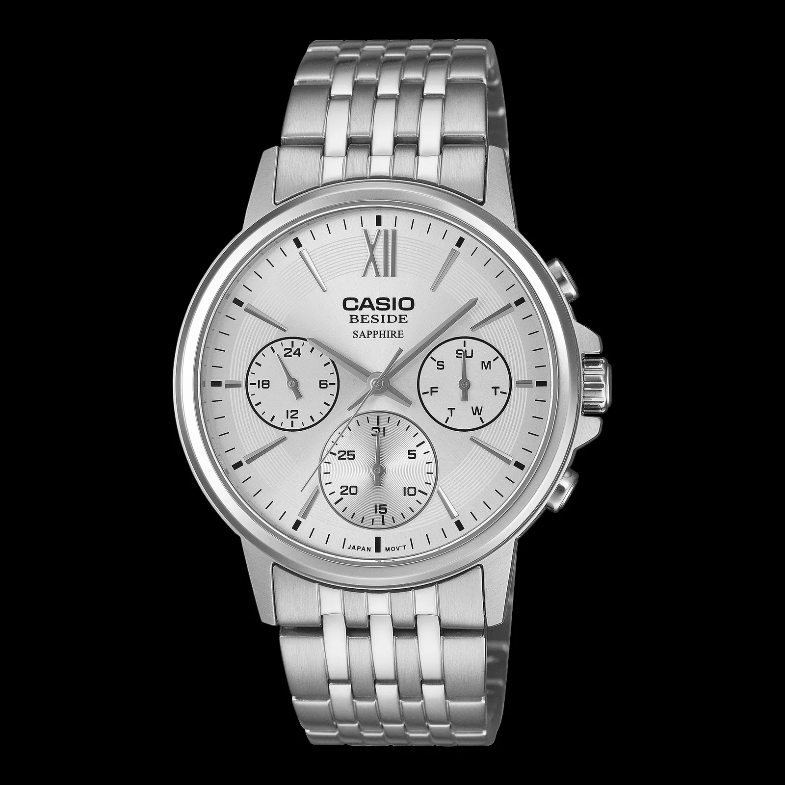 Jeśli chodzi o budowę, wszystkie te modele Beside mają wspólną kopertę ze stali nierdzewnej i ramkę z szafirowym szkiełkiem, co jest nadal stosunkowo rzadkie na tym poziomie cenowym w ofercie Casio. Wymiary koperty wynoszą 46 × 40,7 × 10,1 mm, przy czym wersje wyposażone w bransoletę ważą 119 g, a wersje ze skórzanym paskiem są zauważalnie lżejsze i ważą 55 g. Wodoodporność jest oceniana na 50 metrów, więc będą odpowiednie do codziennego noszenia, ale wyraźnie nie są przeznaczone do użytku sportowego.
