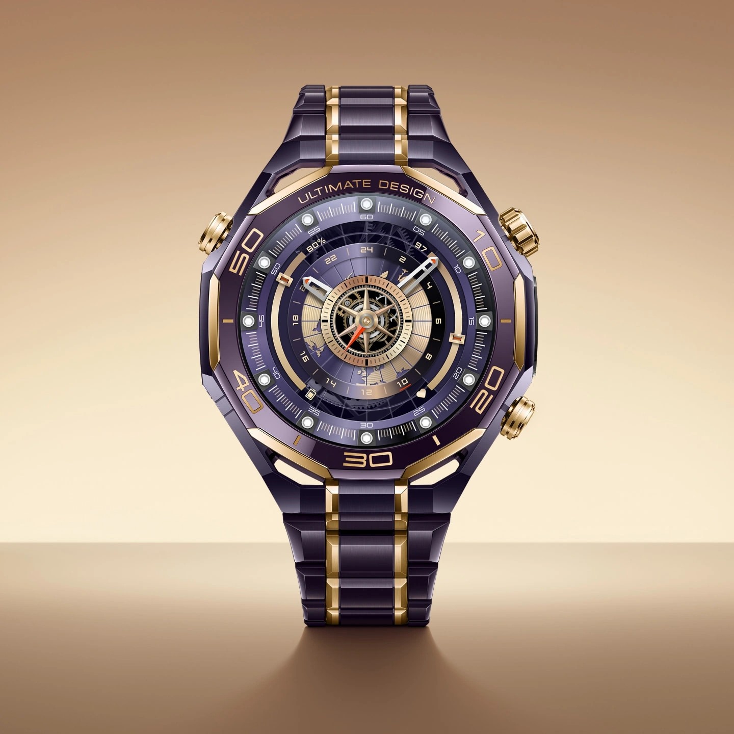 Zegarek Ultimate Design Royal Gold Edition jest opisywany przez Huawei jako "klejnot koronny na nadgarstku". Ma głównie fioletowy design, z 12-stronną ceramiczną ramką oraz elementami z 18-karatowego i 24-karatowego złota. Fioletowa obudowa wykonana jest z ciekłego metalu na bazie cyrkonu, a pasujący do niej fioletowy pasek ze stopu tytanu pokryty jest 24-karatowym złotem. Ekran jest chroniony szafirowym szkłem, a zegarek mierzy 48,3 x 48,3 x 12,9 mm (~ 1,90 x 1,90 x 0,51 cala) i waży 80,9 g (~ 2,85 uncji).