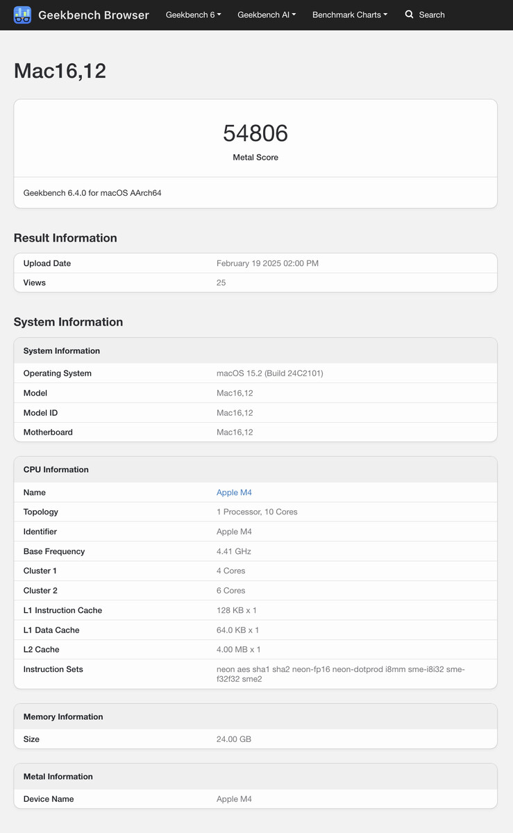 Geekbench nie określa danego komputera Mac nazwą detaliczną. Niemniej jednak, macOS Sequoia 15.2 potwierdził w grudniu, że Mac16,12 odnosi się do następnego MacBooka Air 13. Natomiast "Mac16,13" to numer modelu MacBooka Air 15.